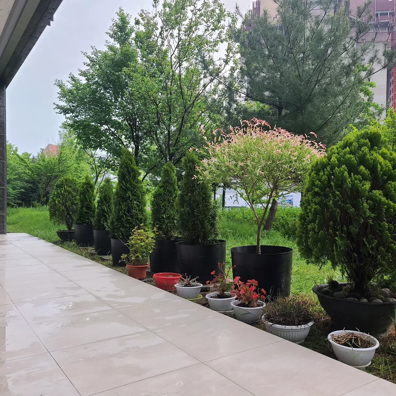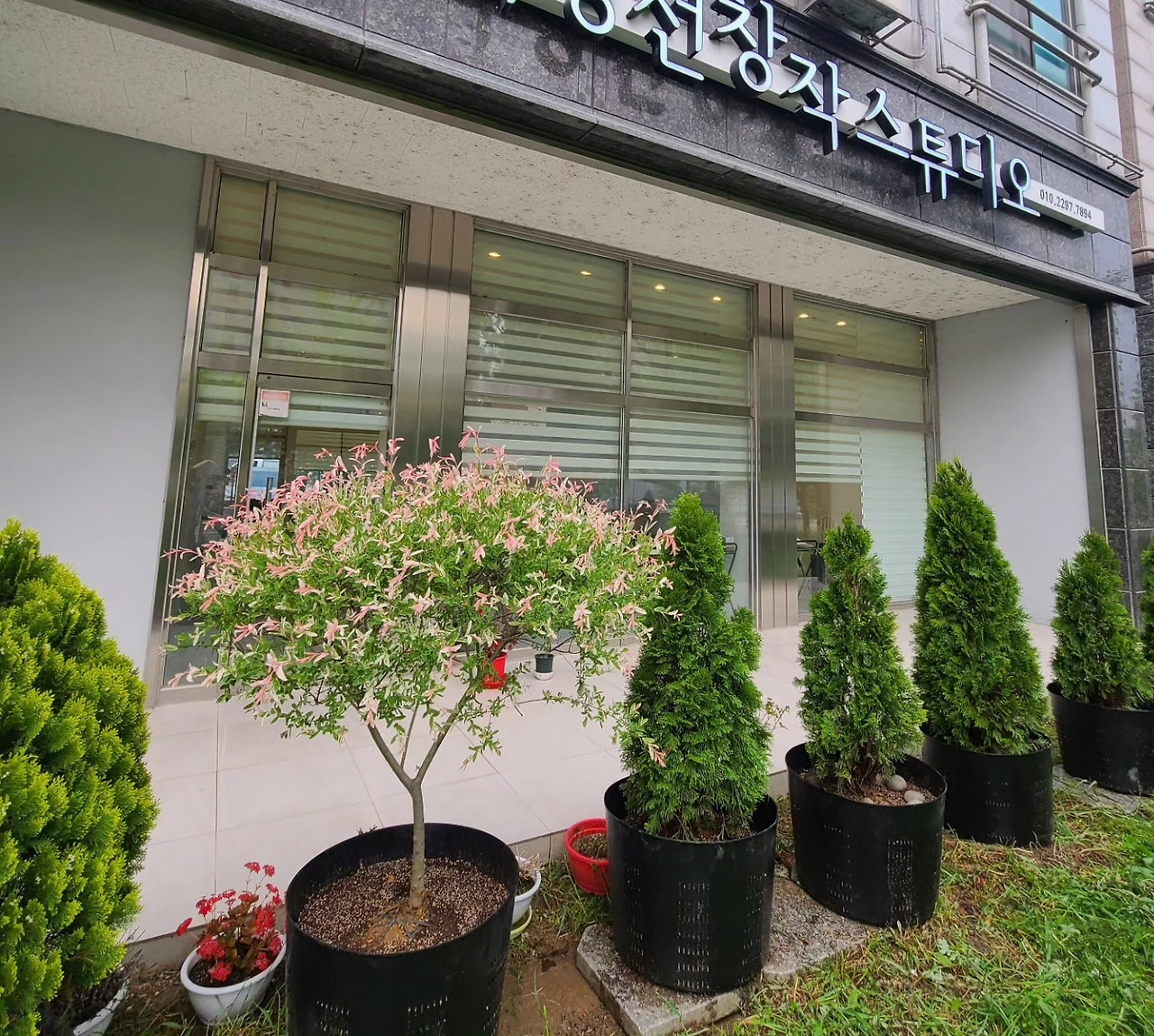 둥그런 편백나무는 꽃이 피지 않기는 하지만, 나름은 나의 오랜 로망이었다. 외국에 잘 정돈된 정원이나 깨끗한 건물 벽 앞에 동그랗고 단정하게 자리를 잡고 있던 게 편백나무였다. 그 나무가 유독 이 상가 건물 앞에 놓여 있던 게 무척이나 고급지고 이국적으로 보였다. 똑같은 나무를 사려고 했는데, 대부분 묘목이 작고 길쭉하거나 다듬지 않아 맘대로 자란 아이의 머리처럼 모양이 제멋대로여서 고급진 느낌이 나지 않았다.