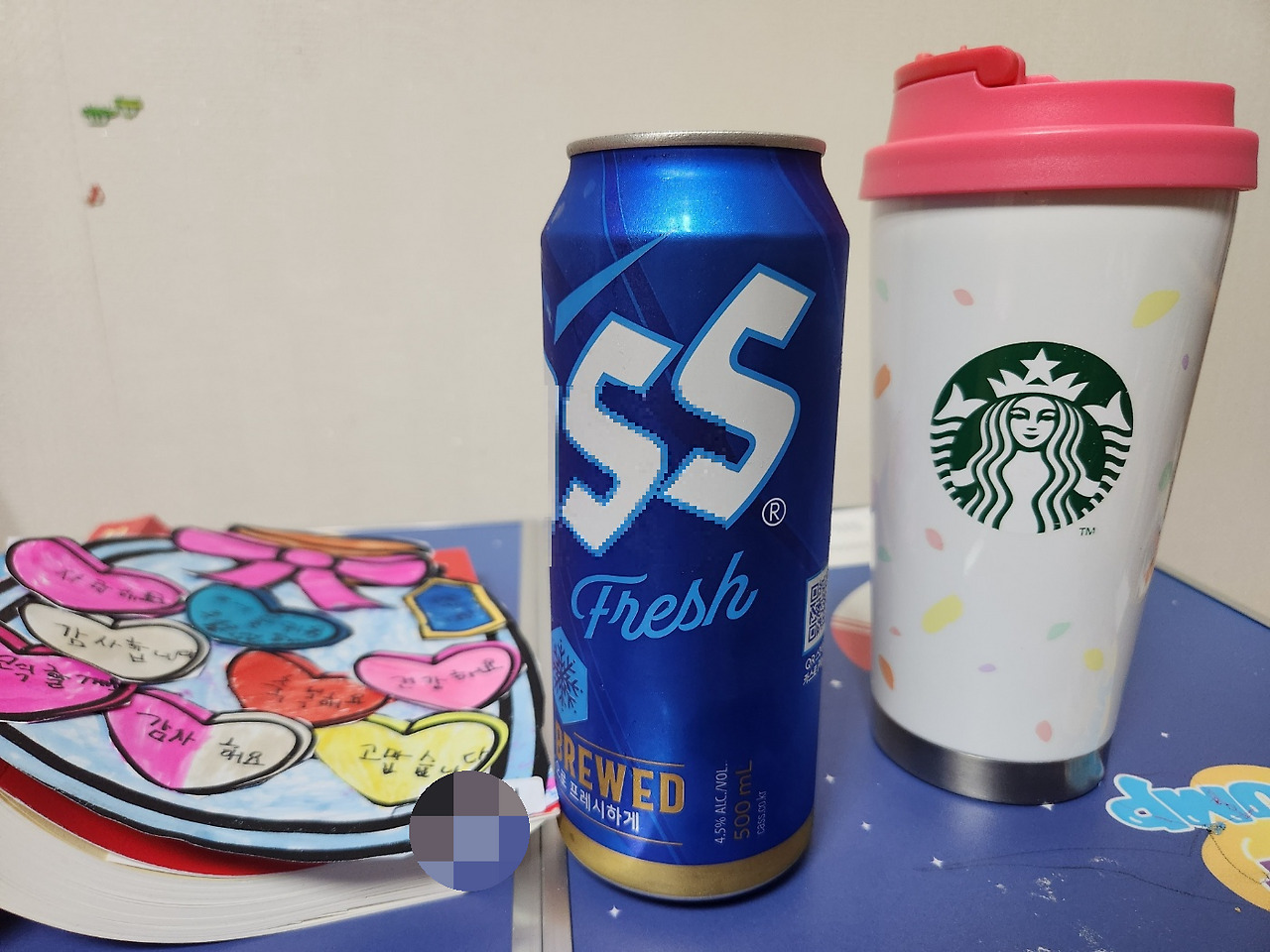 엄마가 잠이 든 사이 할머니와 함께 슈퍼에 가서 자기 돈으로 사 왔다는 카스 500ml. 아빠 것도 사라는 할머니의 말에 아빠는 오늘 생일이 아니라며 할머니의 제안을 거부했다는 칼 같은 대단이.
