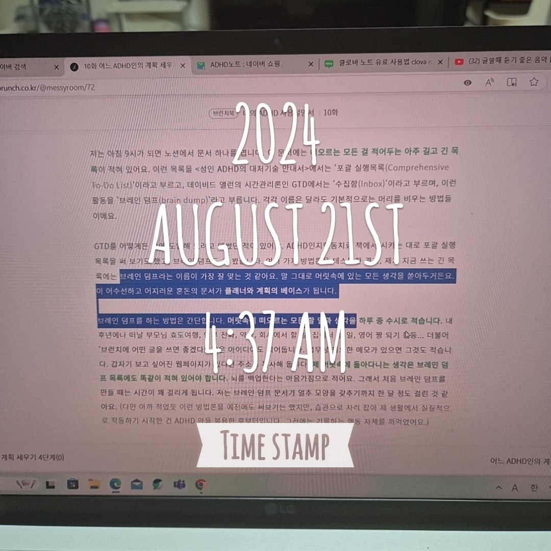 물론, 밤에 유독 집중이 잘되는 사람도 있을 것이다. 하지만 나는 올빼미족이라는 자신에 대한 편견을 지우고 한 번 시도해 보세요. 내 몸의 신호에 귀를 기울인다면, 당신을 위한 시간이 한밤 중이든, 새벽녘이든 중요하지 않을 거예요. 그저 나아갈 뿐!