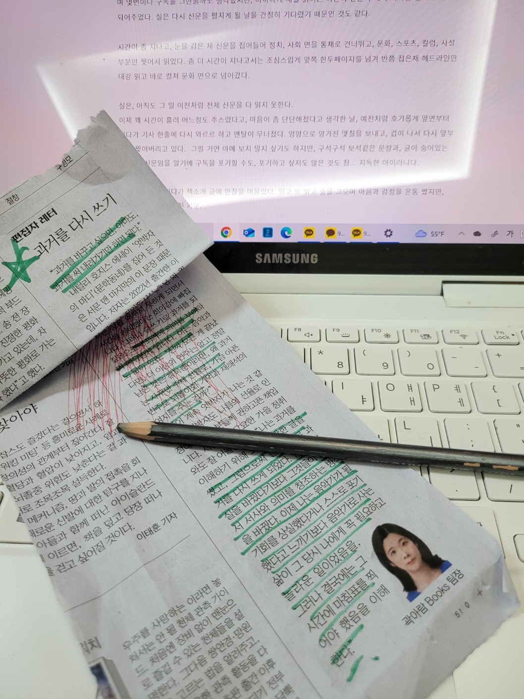 나에게 신문 읽기는 몸과, 마음과, 감정과 정신을 소모하는 격렬한 노동 같은 것.