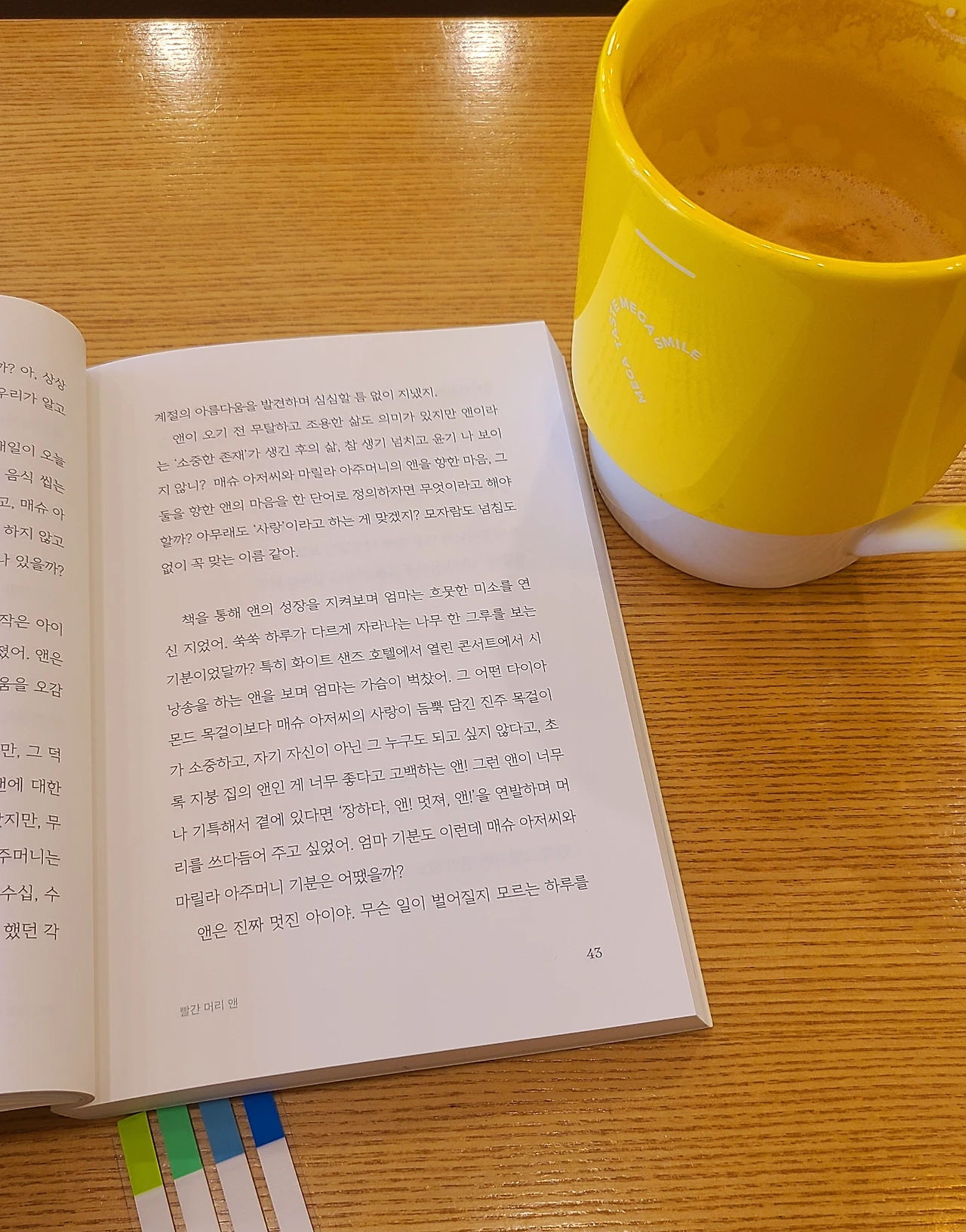 반복되는 일상 속에 아침부터 시부모님께서 주신 작은 이벤트 날이라니~ 그리 예상치 못한 사건으로 웃음이 났다. 뜬금없이 주어진 자유 시간이 생겨 참 감사했다. '지루할 것 같은 일상에 똑같은 오늘은 없다'는 것을 새삼스럽게 인식하게 된 아침이었다. 이 작은 틈은 귀한 시간이란 생각에 급히 병원 근처 일찍 오픈한 카페를 찾아 방문했다. 온전히 나에게 집중하는 시간, 모처럼 일찍 움직여 카페에 앉아 라테 한 잔의 여유를 보내며 들고 나온 책을 펼치니 괜스레 웃음이 났다. 그리 작은 행복을 충전하는 날이 되었다.