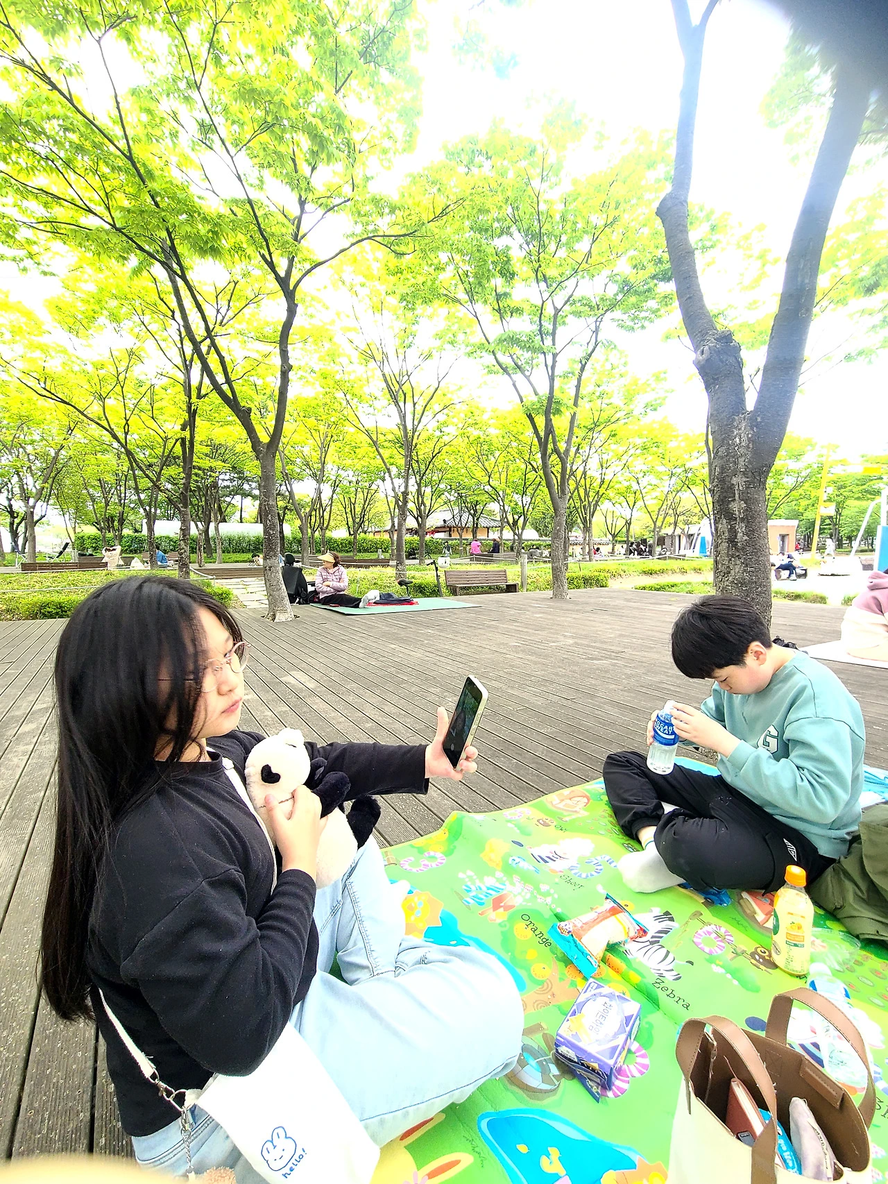 초록이 가득한 공원을 거닐며 여유를 즐기고, 호수 속 잉어와 시원하게 솟구치는 분수를 바라보는 것만으로도 평안 그 자체였다. 뛰노는 아이들을 지켜보는 시부모님의 표정은 오늘따라 더욱 평온해 보였다. 그것만으로도 효도를 다 한 듯한 기분이었다.