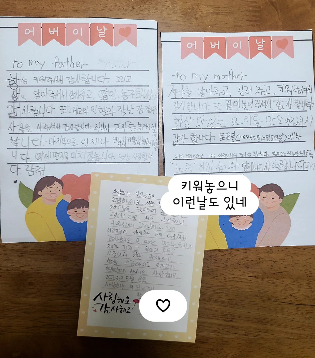 ‘어릴 땐 어린이집이나 유치원에서라도 카드랑 이벤트 선물들을 가져와 감동 주었는데'