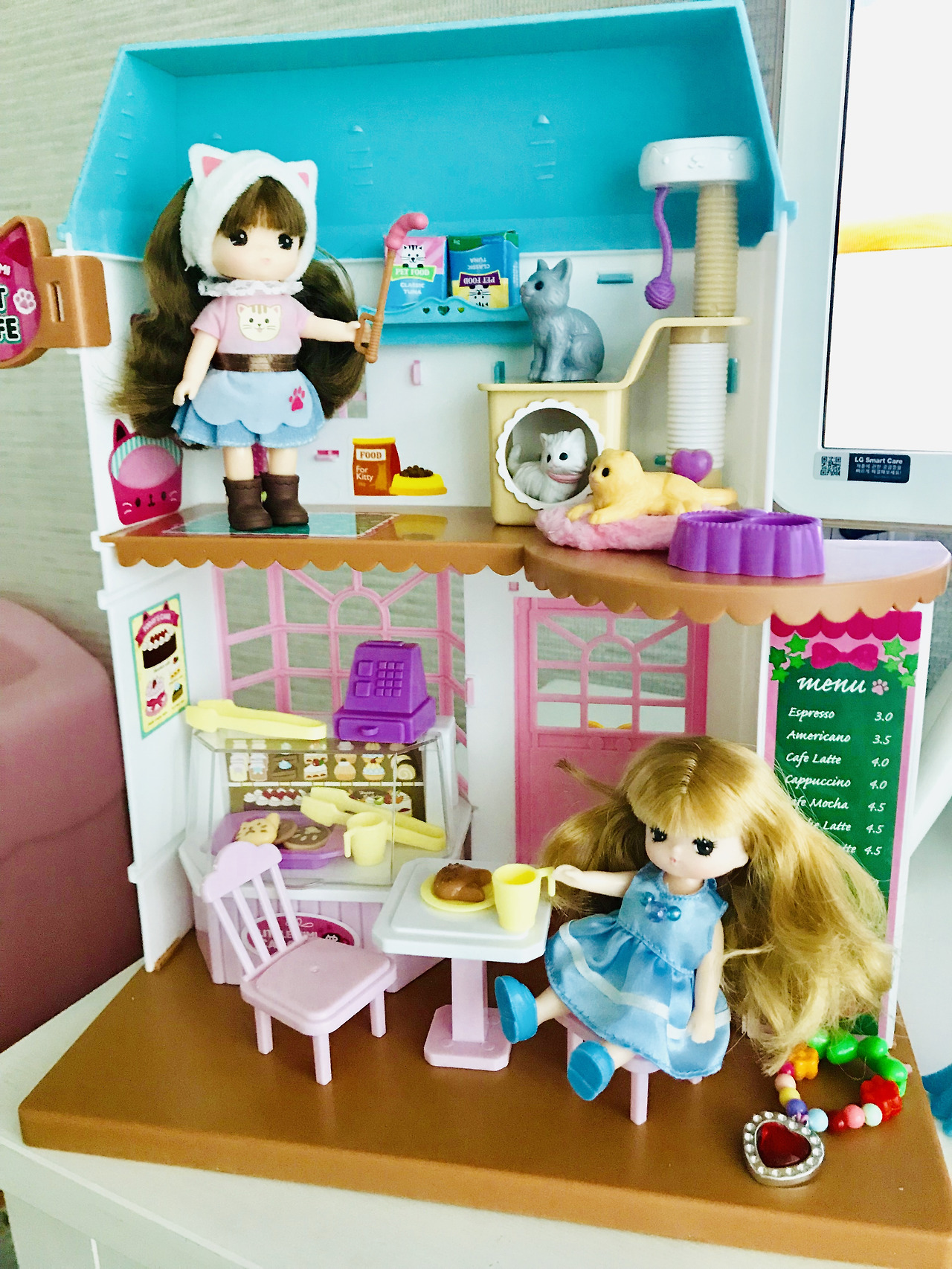 얼마후에 남편은 큰 이유없이 리틀미미 고양이카페 를 딸아이에게 사줬다 그 모든 것이 위의 사진에 나와 있는 것인데 한동안 잘 놀다가 조금 휴식기를 가지는 듯하여 요즘 내가 돌보고 있는 중이다