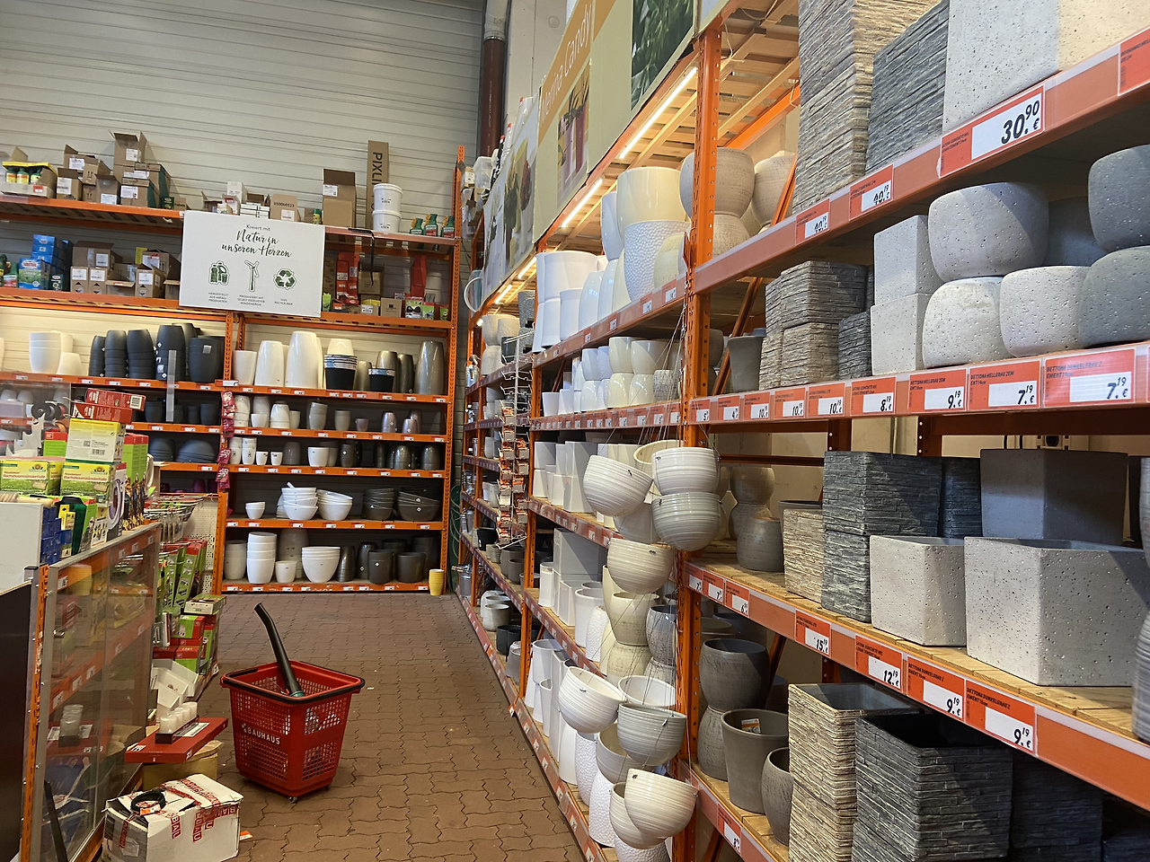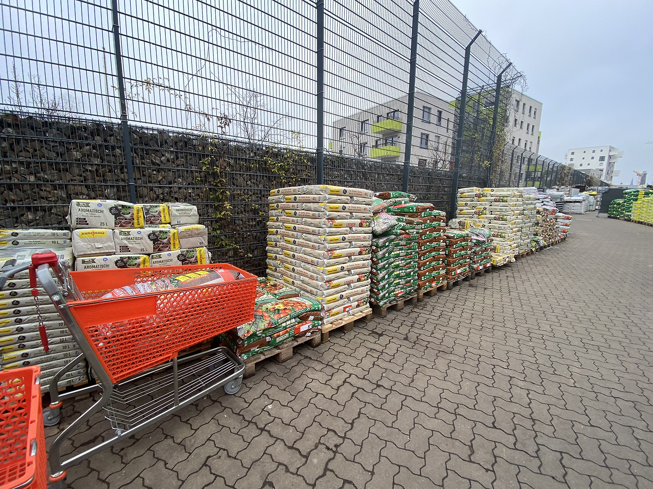 도저히 안 되겠어서 지나가는 직원을 붙잡고, 꽃 흙 (Blumenerde)은 어디에 있나요? 하고 물어봤더니 엄청 친절하게 알려주신다. 감사합니다, 하고 알려주신 방향으로 갔더니, 맙소사. 여기는 또 어디인가요, 뭔 흙 종류가 이렇게 많은 건가요, 라는 생각과 함께 머리가 띵 해지며 분갈이 시작도 하기 전에 난관이 도대체 몇 개나 있는 건지, 이거 제대로 할 수나 있는 건가 싶었다. 그래도 마음을 다시 가다듬고 하나하나 살펴보다 야호! 허브 용 흙이 있다! 당첨! 너다, 너로 정하고 이제 집에 가자, 하고 보니 10kg이 제일 작았다. 하는 수 없지 뭐, 하며 10kg의 흙을 카트에 넣고 돌아오는데 아까 길을 알려 주신 직원분께서 나에게 흙은 잘 찾았냐며 다시 물어봐 주시는 게 아닌가! 나에게 말을 걸 사람이 없는데 누군가가 말을 걸어서 처음에는 조금 놀랐지만, 금세 정말 마음 한켠이 따뜻해졌다. 요즘 괜히 아시아인이라는 이유로 길을 가다가도, 슈퍼에서도 사람들이 나 주위를 피하거나 꺼리는 경우가 종종 있어서 그런지 이 순간만큼은 오래 기억에 남을 것 같다. 흙을 찾으러 이리저리 방황하던 나에게 한 줄기의 빛과도 같던 친절한 직원분.