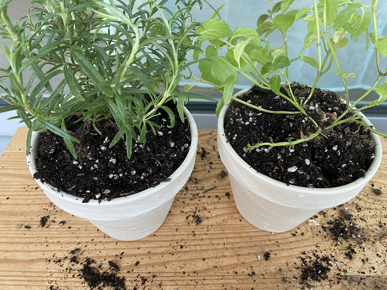 우선 발코니로 민트와 로즈마리, 그리고 조금 전에 사 온 것들을 모두 옮기는 것으로 분갈이 준비 완료. 그다음, 화분 구멍으로 흙이 세는 것을 방지하기 위하여 스펀지 수세미에 수세미 부분을 자르고 2등분을 하여 화분에 담았다. 그 위로 새로 산 흙을 살짝 덮고 민트와 로즈마리를 각각 원래 있던 화분에서 꺼내어 새로운 화분에 안착시켰다. 그 위에 새로운 흙을 덮고 샤워실에 데리고 가 물을 흠뻑 주고 나면 끝! 막상 시작하니 금방 끝나버렸고, 흙도 거의 사용하지 않아서 10kg가 민망할 정도로 대부분이 남아 버렸지만, 앞으로 또 사용할 날이 있겠지, 생각하며 발코니 보관함에 넣어두었다. 로즈마리는 뭔가 같은 곳에서 사서 그런지 안에 들어있던 흙도 비슷하여 분갈이를 한 느낌이 들지 않을 정도로 딱 맞아떨어진 것 같은데 민트가 조금 불안하다. 그래도 무사히 분갈이를 끝낼 수 있었던 것에 의의를 두며, 멀찍이 의자에 앉아 바라보고 있는데 왠지 모를 뿌듯함이 마음 가득 든다. 거기다 덤으로 손에서는 로즈마리와 민트 향기가 폴폴 풍기는데 집에서 느껴지던 적막함과 쓸쓸함이 씻겨 내려가는 느낌이 들었다. 이래서 사람들이 식물을 키우는구나, 이래서 식물도 반려동물과 같은 대우를 하는 사람들이 있는 거구나, 라는 걸 느낄 수 있었다.