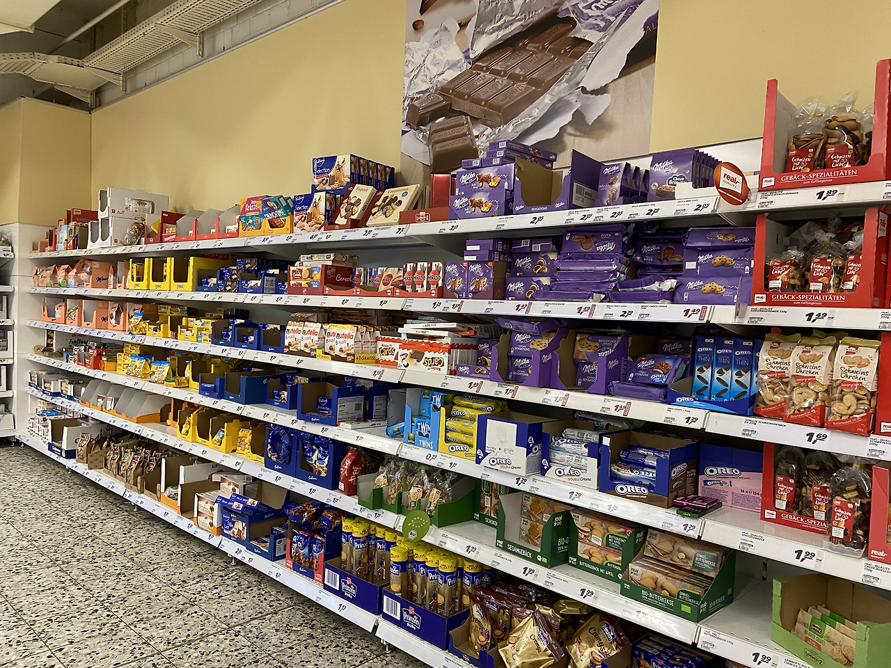 이런 나에게 하리보의 고향인 본(Bonn) 근처의 쾰른에 사는 것은, 어쩌면 천국 같은 곳에서 산다고 하는 것과 별반 차이가 없을 수도 있다. 슈퍼에 가면 지금까지는 본 적도 없는 하리보와 다른 젤리들이 과자 코너에 한 줄을 가득 차지하는 경우가 허다하며, 종류도 다양하게 진열되어 있다. 그뿐이랴. 밀카와 린트에서 나오는 초콜릿 종류 또한 다채로우며 그 풍미 또한 깊고 진하다. 슈퍼에서 싸게 바움쿠헨(Baumkuhen)을 사면 우유와 함께 아침에 먹기 딱 좋으며 진저 쿠키도 큼직큼직한 게 먹고 나면, 아 과자를 참 잘 먹었구나, 기분이 들게 해 준다. 맥주를 마실 때에는 미니 혹은 스틱으로 생긴 브레첼(Bretzel)을 집어 먹거나 감자칩에 과카몰리를 찍어 먹기도 한다. 오스트리아와 가까워서 그런지 마너 웨하스도 슈퍼에서 종종 보여 집에 사놓는다. 이렇게 매일 슈퍼를 갈 때마다 종류별로 하나, 둘씩 사놓아서 그런지 내 방의 과자 진열장은 언제나 가득 쌓여있어 보고만 있어도 내 마음을 꽉 채워준다.