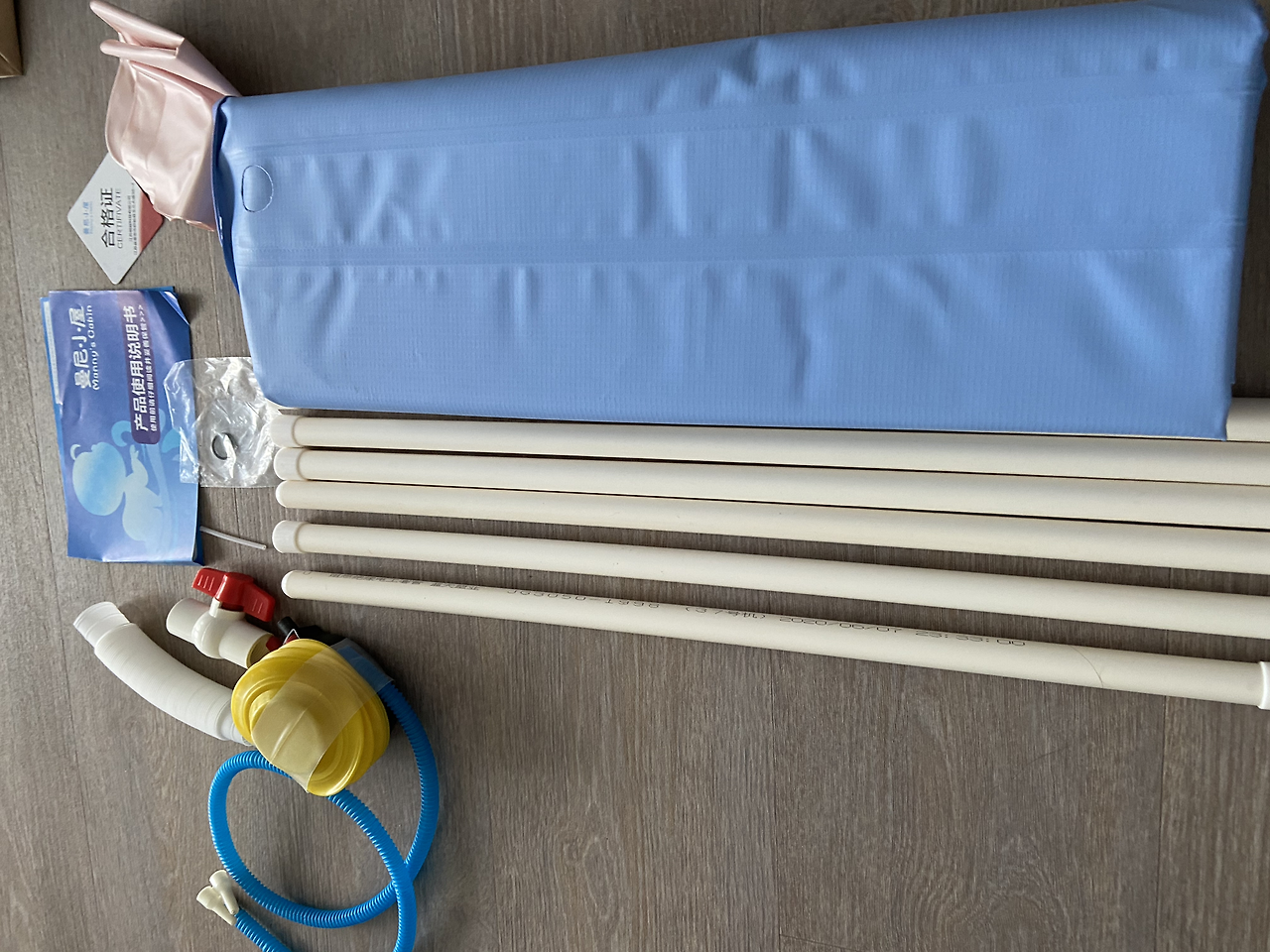 한 번 당해서 그런지 괜히 이번에도 다른 물건일까 봐 걱정이 앞섰다. 하지만 걱정도 잠시, 박스를 여는데 고무 냄새가 엄청나서 이번에는 나의 욕조가 맞는구나 싶었다. 펼쳐두면 냄새는 금방 빠지겠지 생각하며 조립을 하려고 설명서를 펼쳤더니, 어머나, 모든 것이 중국어다. 그 흔한 영어조차 한 글자도 없었다. 설마 했는데 정말 중국산, 진짜 중국산이 왔구나 싶었다. 구글 번역기의 도움을 받아가며 하나하나 맞춰나갔다. 공기 주입을 하면 고무 뚜껑으로 막기 전에 이미 공기가 반 이상 도로 빠져나가 버려 몇 번을 시도하느라 공기 주입하는 것이 꽤 힘든 난관이었지만, 그래도 얼추 모양새는 만들어졌다. 샤워실에 가져가 보니 샤워실 칸에도 딱 맞아서 신기했다. 물을 받기 전에 한 번 들어가 봤는데 생각보다 공간이 넓어서 잘 산 것 같다. 오늘 드디어 오랜만에 욕조에 몸을 담가 보는구나!
