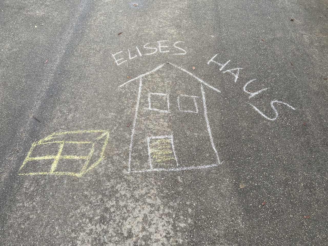 이 날은 집 앞 트램을 타면 5 정거장 정도 떨어져 있는 Beethovenpark에서 조깅을 하였는데, 오랜만에 비가 오지 않는, 기온도 포근한 주말이어서 그런지 사람이 꽤 많아서 뛰면서도 마스크를 착용하고 다녔다. 공원 중심 구역은 강아지와 산책하는 사람들, 자전거를 타는 사람들, 유모차를 몰고 아이들과 다니는 사람들로 나를 포함하여 조깅하는 사람들이 뛰다가도 방향을 틀어야 하거나 잠시 멈춰야 하는 경우가 많았기에, 조금 인적이 드문 길을 찾아 나섰다. 그러다 발견한 곳이 공원 근처에 있는 주말 농장을 하는 구역이었는데 이 곳은 지나다니는 사람들이 현저히 적었다. 그러다 길 한복판에서 발견한 분필로 그려진 작품에 뛰던 나의 발걸음도 바로 멈추게 되었다. 초등학교 때 형형색색의 분필로 길바닥에 그림을 그리거나 땅따먹기를 그리고 놀던 때가 떠올랐다. 오랜만에 본 분필로 된 낙서들에 이름 모를 아이들의 작품이지만 멈춰서 사진을 찍을 수밖에 없었다. COVID-19로 안타깝게 올해는 크리스마스 느낌을 거의 느낄 수 없었는데 이 낙서들만으로도 크리스마스를 만끽한 기분이 들었다. 거기다 '우리 집'이라는 글씨와 함께 그려진 집 그림도 귀여웠다. 글씨를 쓰기 시작한 아이들은 신기하게도 거의 대부분이 그림을 그리고 나면 그 근처에 이 그림이 무엇인지 꼭 글씨로 적어서 다시 알리려는 습성이 있나 보다. 이는 서양이든 동양이든 상관없는 아이들의 공통점인 것 같다. 낙서들을 보는데 나도 모르게 아이들이 집중해서 그림을 그리고, 다 그린 후 부모님에게 가서 자신들의 작품을 자랑하고 같이 보며 깔깔거렸을 장면들이 상상이 되었다.