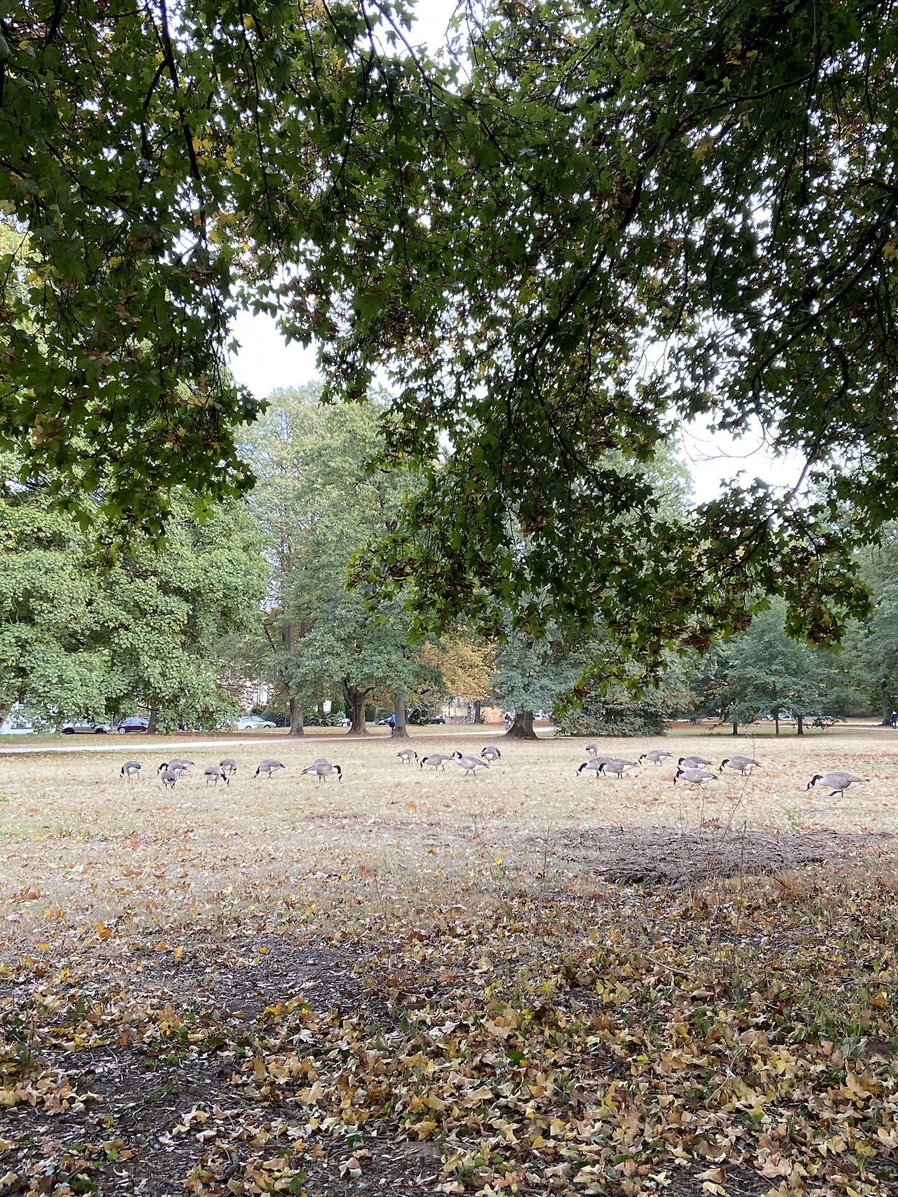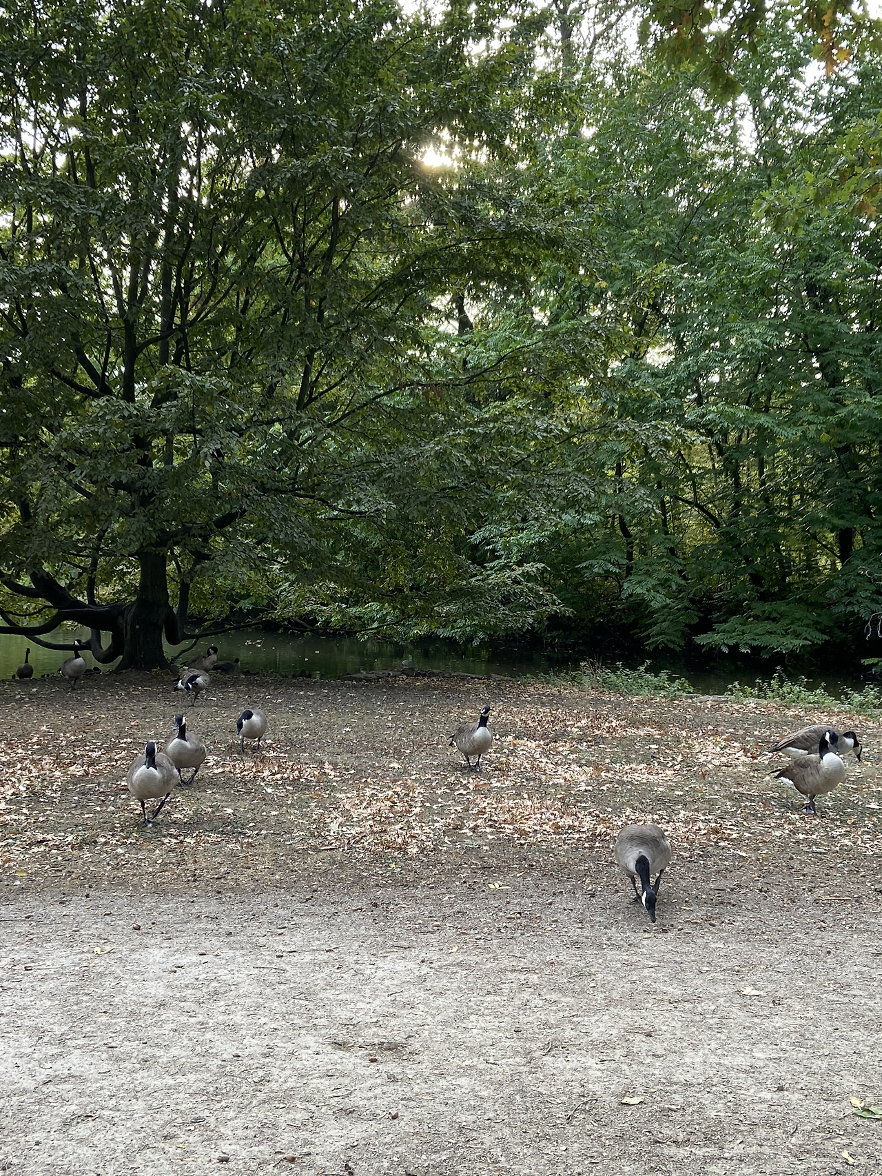 특히 평일에는 사람도 적고 한산하여 최적의 산책로다. 걷다 보면 강아지들이 산책하다 친구들을 만나 나뭇가지를 물고 같이 나뒹굴며 노는 모습, 그러다 주인이 부르면 달려가 주인 곁만 졸졸 따라다니는 모습, 유치원이 끝나고 친구들과 노는 아이들의 모습도 자주 볼 수 있고, 거기다 오리와 거위들이 도토리를 먹는 모습도 포착할 수 있다. 도토리를 얼마나 먹었는지 포동포동 살이 찐 모습을 보면 흐뭇한 웃음을 지을 수밖에 없다.