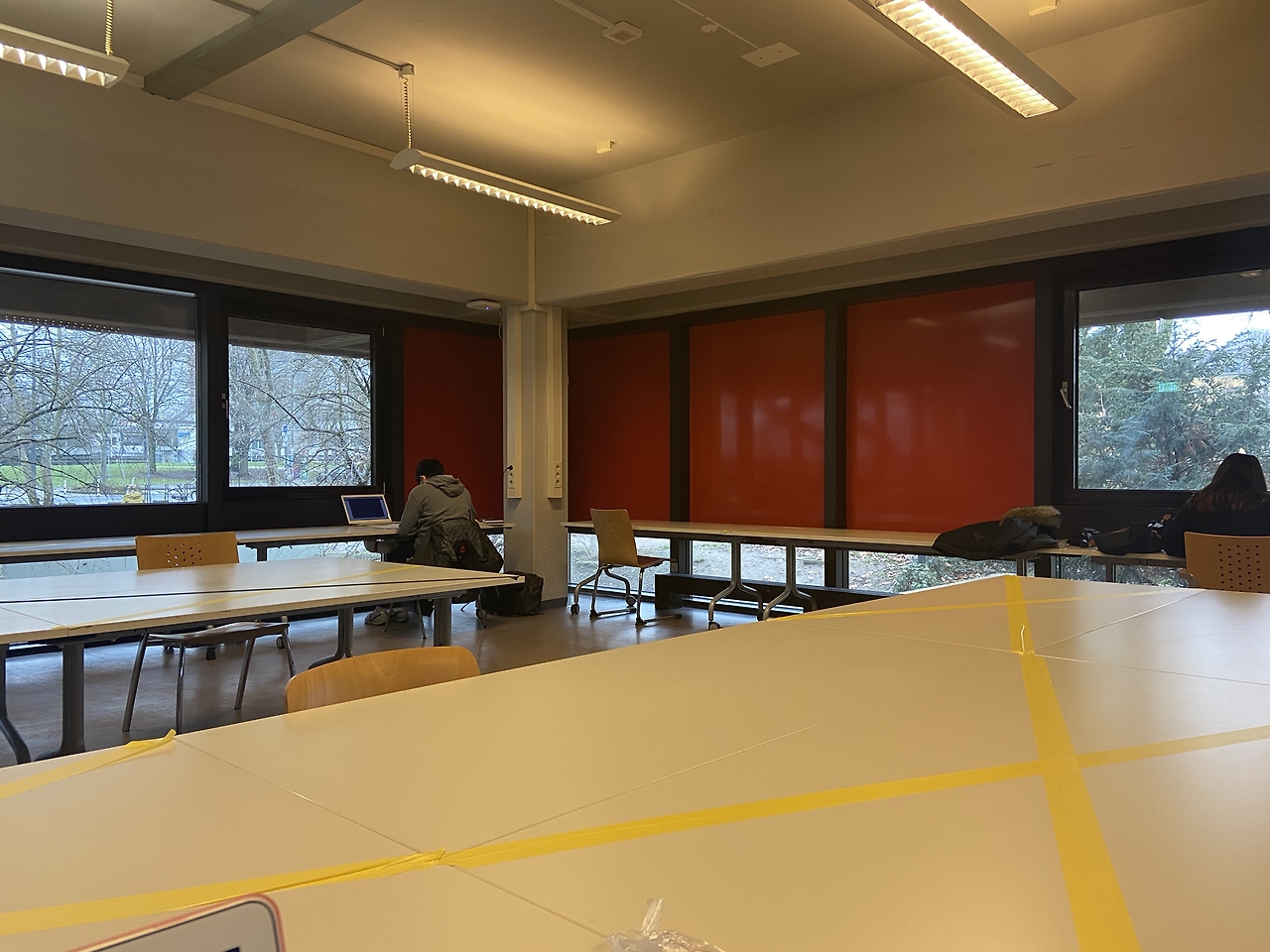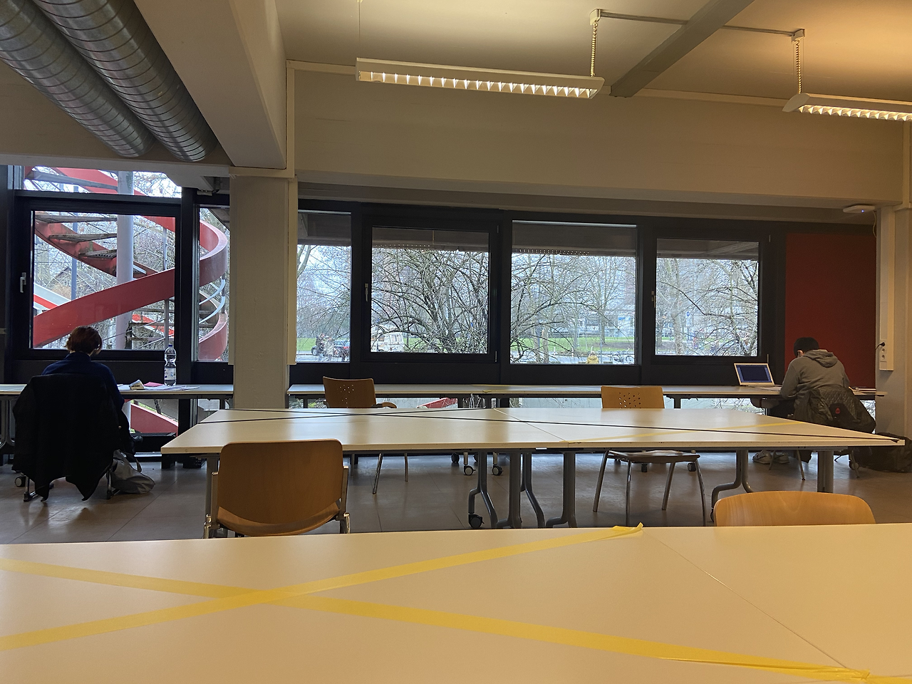 2021년 새해가 밝았다. 하지만 1월 3일까지는 연휴였기에 엄밀히 따지면 새해의 첫 시작은 1월 4일부터라고 할 수 있다. 그 첫 시작은 1월 4일 아침 8시가 되자마자 위층에서 리모델링하는 공사 소리가 다시 시작된 것이다. 변한 점은, 사람들의 항의로 인하여 원하는 학생들에게 오전 9시부터 오후 5시까지 COVID-19로 인하여 폐쇄되어 있는 학교 식당 건물 한켠에 공부할 수 있는 공간을 1월 4일부터 마련해 준다는 방침이다. 공사 소리가 작년보다 더 심해졌기에 나는 눈 뜨자마자 부랴부랴 준비해서 집을 나섰다. 얼마만의 집 밖인가, 생각하며 처음으로 가 보는 곳은 그게 어디든 긴장하는 성격 탓에 별에 별 걱정을 했던 것 같다. 학교 식당 건물에는 문이 두 개가 있는데 정문만 열려 있다고 하여 정문으로 보이는 큰 문으로 갔더니 이게 정문이 아닌가 보다. 다시 둘러 둘러 돌아가서 작은 문으로 갔더니 직원 분이 앉아 계셨다. 공부 방 (Lernräume) 이용으로 왔냐고 물어봐주셔서 맞다고 하니, 앞에 보이는 종이에 이름, 주소, 전화번호, 입실 시간, 사인을 하고 손 소독제를 사용한 후 들어가라고 알려주셨다. 웃으며 인사해주시고 친절하게 알려주신 덕분인지 이때 나의 긴장감은 반으로 줄어들었던 것 같다.