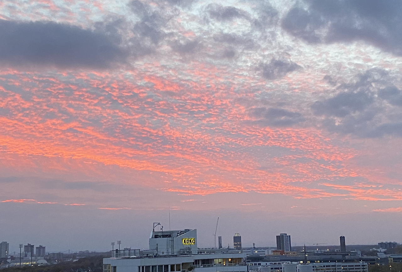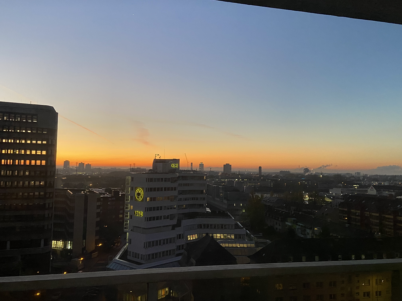 그리고 지금 여기, 쾰른도 네덜란드와 다를 바 없이 11월이 시작되고 쏴아 시원하게 내리는 비가 아닌 엉거주춤한 이도 저도 아닌 비가 왔다가 갔다가 오다 말다 하는 나날과 구름으로 잔뜩 껴 있는 하늘인 나날이 갈수록 많아지고 있다. 거기다 올해 9월에 한국에서 돌아왔을 때에는 해가 저녁 8시 넘어지더니, 지금은 오후 4시 35분만 되어도 져버린다. 그럼에도 불구하고 아침에 해가 뜰 때에는 어김없이 햇살이 창문에 가득 비치는데 나는 이 시간이 정말 좋다. 나의 방은 한쪽 벽면이, 즉 발코니로 향하는 곳이 통유리창이다. 이 통유리창은 감사하게도 남동쪽을 향해 있는데 그래서 그런지 아침에 정말 구름으로 꽉 찬 하늘이 아니라면 해가 뜰 때 창문을 통하여 햇살과 함께 따뜻한 공기가 방안을 감싼다. 아주 조금의 단점이 있다면 이 시간이 점점 늦어져 오전 11시가 넘어도 해가 뜨는 중인지 창문을 바라보고 있는 나의 책상에 다가가 앉을 수조차 없다. 그래도 햇빛이 없는 것보다 있는 게, 나의 건강을 위해서도, 생활리듬을 유지하기 위해서도 절대 빠질 수 없는 요소라는 것을 알기에 투덜대기보다는 겸허히 받아들이고 있다.