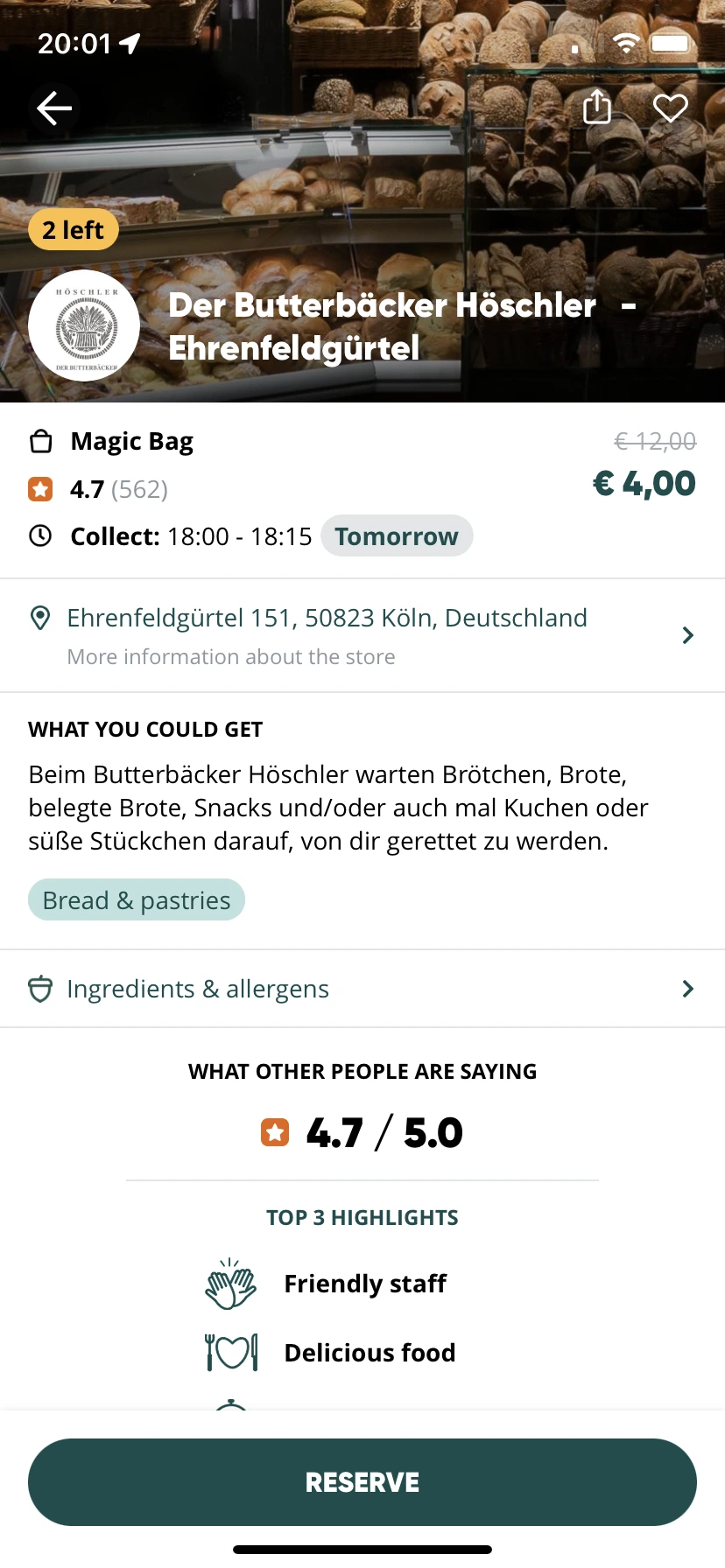 예를 들어, 한 빵집에서 그날 남은 빵들을 가지고, 원래라면 12유로 정도 하는 양을 4유로만 받고 저녁 6시에서 6시 15분 사이에 가지고 갈 수 있게 만들어 놓는 것이다. 물론 그날그날 남는 양과 종류는 다르기 때문에 어떤 것이 들어 있을지는 알 수 없다. 하지만 Magic Bag이 몇 개가 남았는지, 가게 이름은 무엇이고, 어디에 있으며, 이 어플을 통해서 이 가게를 이용한 사람들의 별점, 좋은 이유 등도 볼 수 있다. 예약제이므로 어플에서 미리 돈을 지불해야 하고, 가게에 시간 맞춰 도착을 한 후 점원에게 어플을 보여주고 같이 확인을 하면 물건을 받을 수 있다. 음식물 쓰레기가 얼마나 환경에 안 좋은 영향을 끼치는지는 누구나 잘 알고 있다. 그리고 싼 값에 먹을거리를 구할 수 있다는 것은 지갑이 얇은 학생들 뿐만 아니라 웬만한 사람들에게 땡잡은 기분을 선사해 주지 않을까 싶다.
