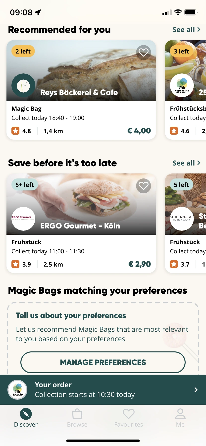 COVID-19 팬데믹으로 사람들이 돌아다니지 않게 되고, 식당 안에서도 밥을 제대로 못 먹게 되면서 남은 음식물 처리가 문제시되었다. 그러다 만들어진 'TooGoodToGo'라는 어플은 독일뿐만 아니라 네덜란드 등 다른 유럽 나라에서도 사용이 가능한 것으로, 집 근처에 있는 슈퍼, 레스토랑, 빵집 등에서 그날 남은 음식을 가지고, 버리는 대신 가게에서 임의로 한 상자씩 혹은 한 가방씩 ('Magic Bag'이라고 불린다) 만들어 놓은 것을 보통 3-5유로 사이로 측정하여 정해진 시간 동안 가져갈 수 있게 예약제로 운영이 되는 어플이다. 물론 와인이나 찻잎 등의 경우에는 15유로 이상 하기도 하지만, 그런 것은 원래 가격이 50유로 안팎인 경우가 많다.