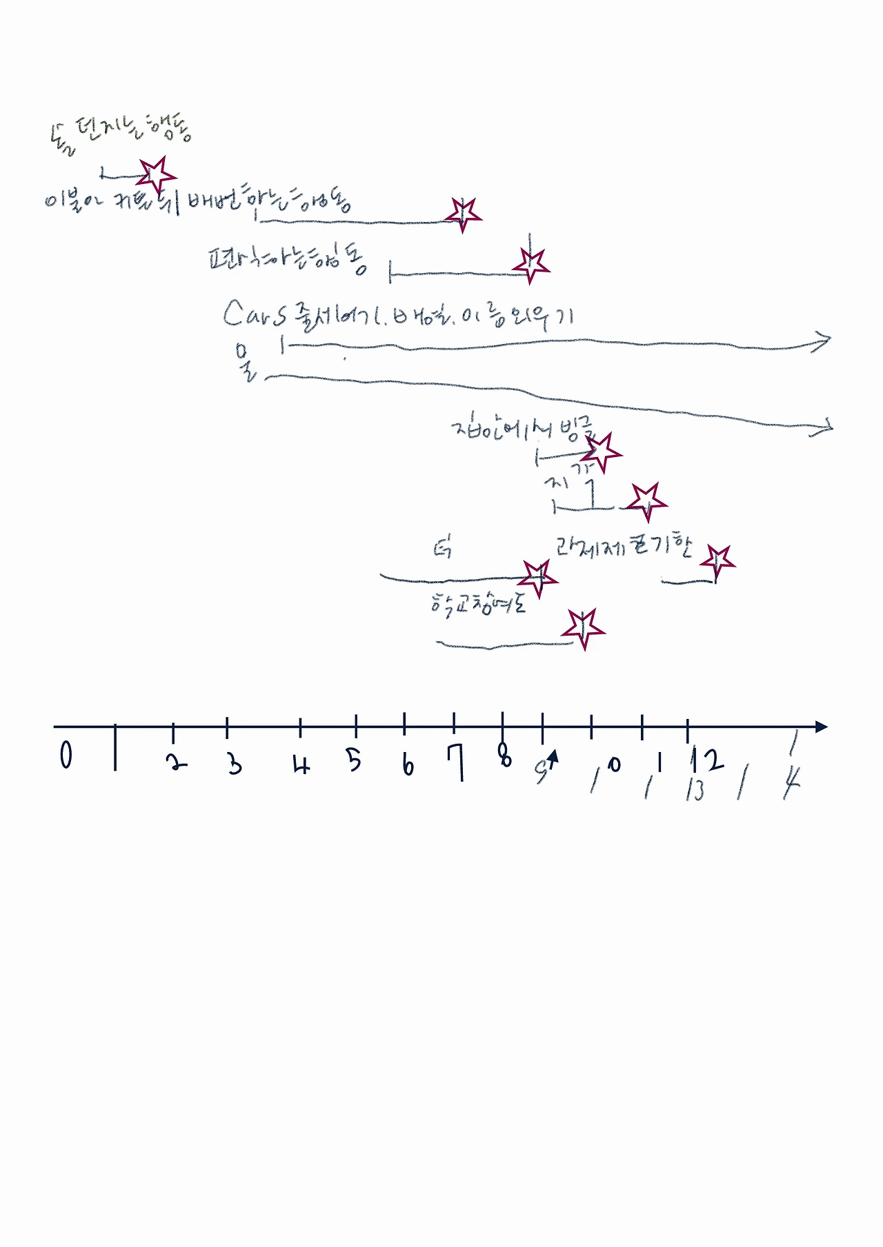 나 자신에게 잘 견뎠다고, 잘 가르쳤다는 뜻에서 문제 행동 종결 시, 별딱지를 선물했다.