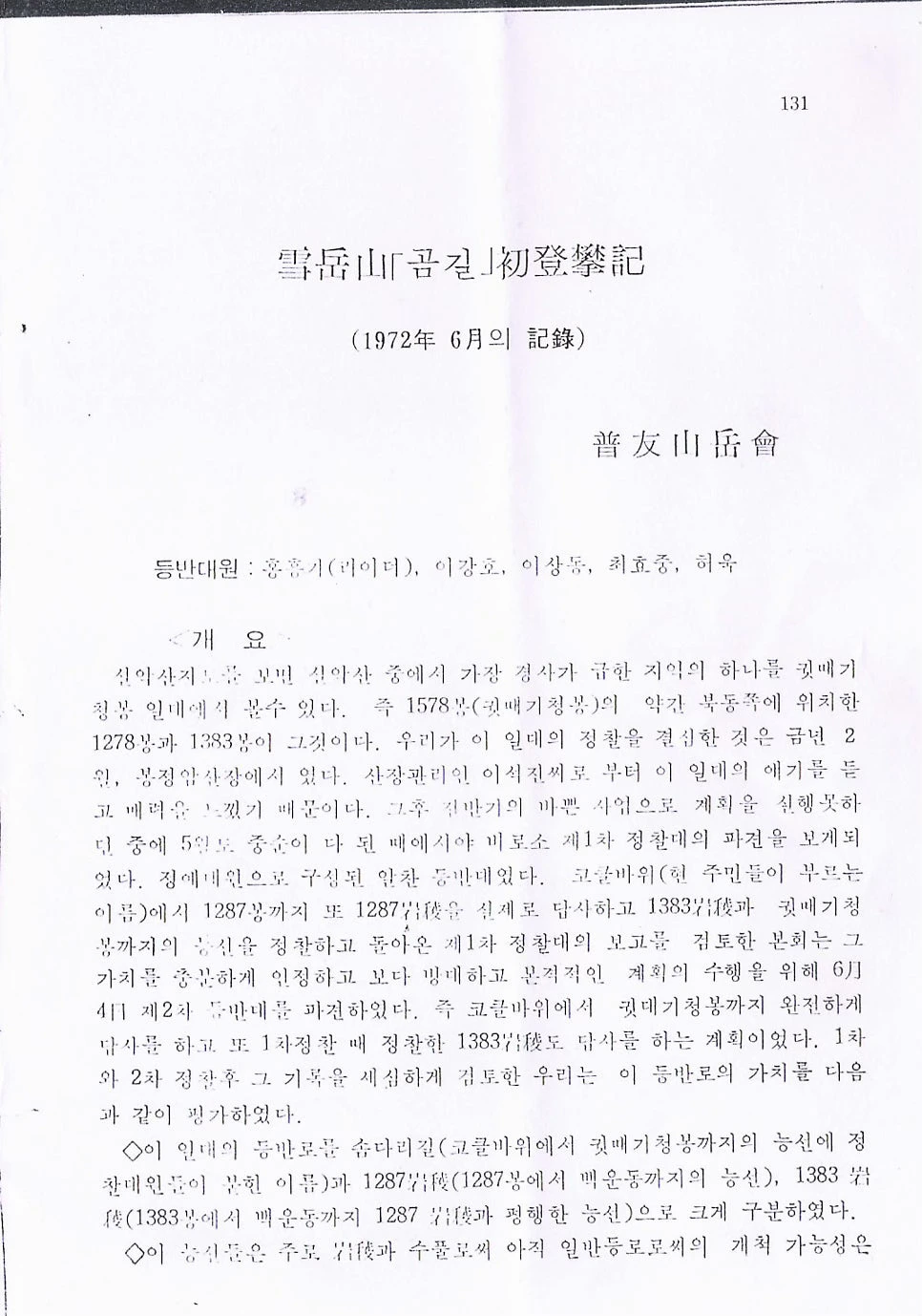 어떤 이야기들을 기록해 두자, 아니 기록하자, 라고 생각하기 때문이었다. 8월 초순, 누나가 가족 단톡방에 어느 블로그 글을 하나 공유했다. 아버지의 20대 시절, 설악산 암벽 등반 루트를 산악회 동료들과 함께 개척한 기록이었다. 입원하던 일요일에서 고작 나흘이 지났을 뿐인데 눈에 띄게 수척해진 얼굴에 깎지 못한 수염이 덥수룩한 아버지의 모르던 이야기를 듣고 싶었다. 엄마조차 확실히 아는 것은 아니었다.