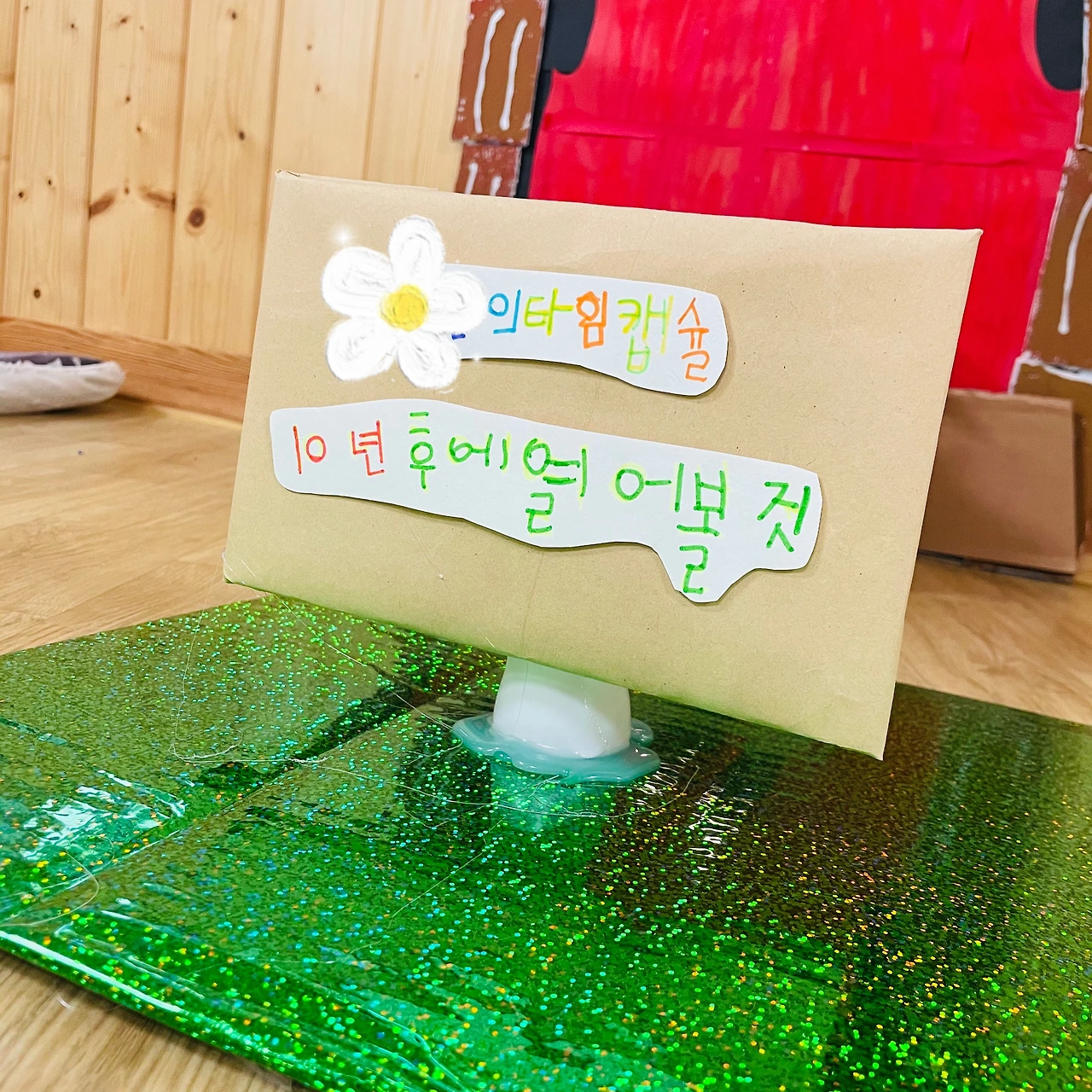 그것들을 편지 봉투에 곱게 접은 후 교실 한 구석에 타임캡슐의 자리를 마련하였다. 우리는 타임캡슐 앞에서 언제 이 타임캡슐을 꺼낼 것인지 논의하기 시작했다.