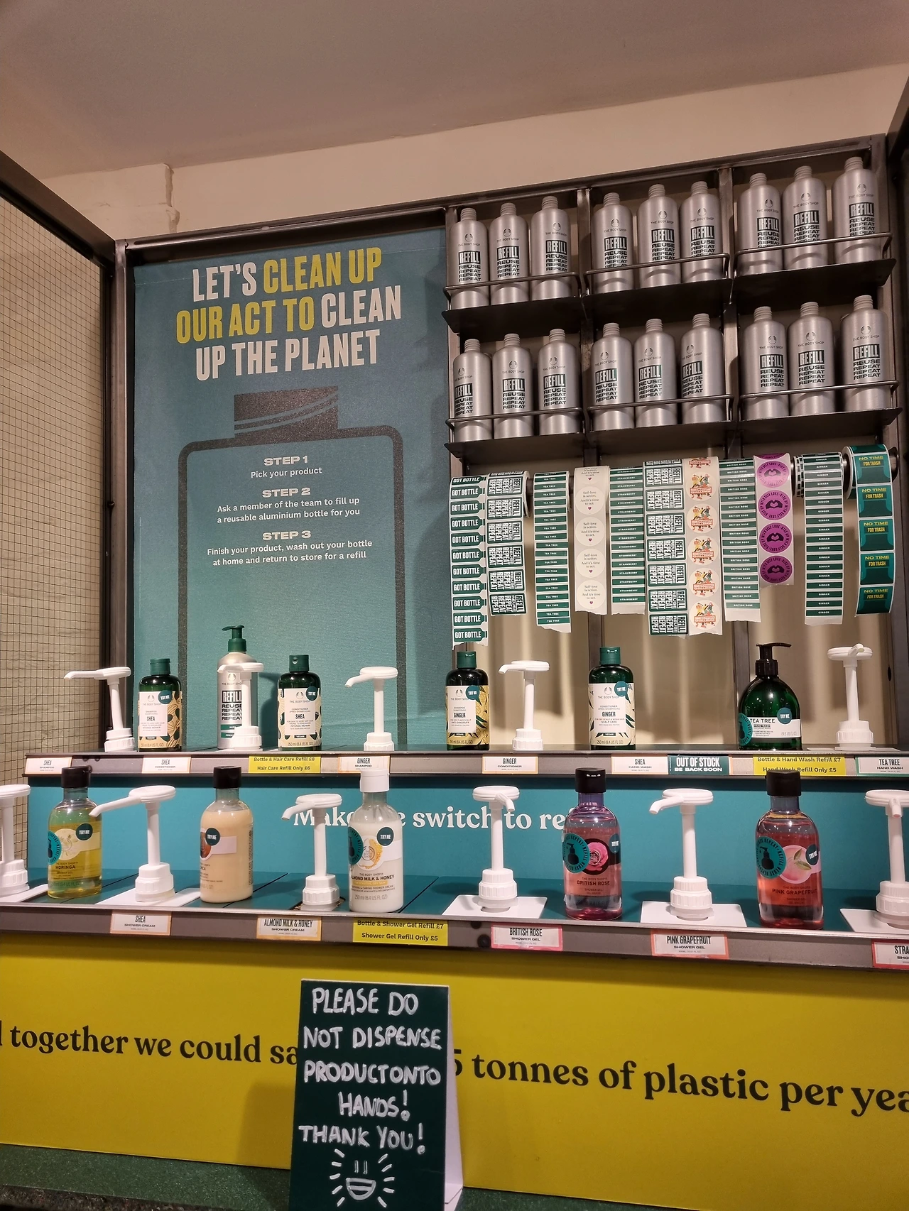 가장 놀라웠던 것은 기업 차원에서 환경 보호를 많이 실천하고 있다는 점이었다. 택배 상품은 뽁뽁이나 비닐 완충재로 포장되지 않는 것은 물론이고, 심지어 테이프로 밀봉할 필요가 없는 박스에 담겨 온다. 세제나 샴푸 등을 담고 있는 대부분의 플라스틱 통은 물론이고 심지어 체크카드나 의류까지 recycled plastic으로 만들어졌다는 문구로 표기되어 있다. 이러다 보니 소비자인 나도 기왕 사는 거면 recycled plastic으로 된 물품을 사자는 마음을 가지게 되었다. 마트에서 비닐봉지는 눈 씻고 찾아봐도 보기 힘들었다. 대신 채소나 과일을 담을 종이봉투, 그리고 장바구니를 잊은 경우를 대비한 재생 플라스틱 가방이 구비되어 있었다. 동물 실험을 하지 않았거나 친환경, 비건으로 만들어진 상품들도 굉장히 다양하게 있다. 초반에 유기농 닭고기를 살 때만 해도 고기는 초록색 플라스틱 통에 담겨 있었는데 몇 달 지나서 좀 더 작고 투명한 플라스틱 통에 포장되어 있었다. 사 먹던 시리얼도 양은 그대로지만 비닐 포장을 줄였으며, 영국을 떠날 무렵에는 두루마리 휴지 역시 포장 비닐과 휴지심을 절감을 위해 한 휴지심에 2배의 휴지를 말아 놓은 것으로 바뀌었다.