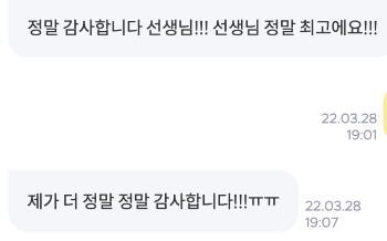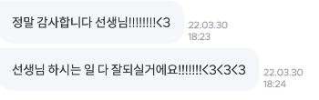 고객과 일대일로 비교적 단기 프로젝트를 진행하기 때문에 결과에 대한 피드백을 빠르게 받을 수 있고, 내가 한 일의 영향력이나 기여도도 쉽게 확인할 수 있다는 게 이 일의 장점이다. 이런 특징이 내게는 큰 원동력이 되기 때문에 모르는 걸 새롭게 배웠다던가, 시간에 맞춰 서류를 제출했다는 말만으로도 뿌듯함을 얻었었다. 거기에 더해 이 정도의 칭찬을 받으면 이 일을 하길 참 잘했다는 생각이 든다. 이런 코멘트는 하나씩 캡처해두고 힘들 때 꺼내서 읽기도 한다.
