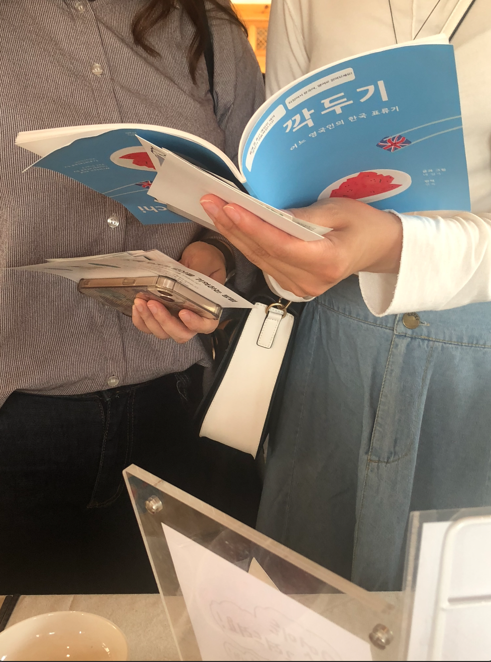 실제로 페어에서도 반응이 상당히 좋았다. 일단 독립출판계에 외국인이 주체가 되어서 쓴 책이 드물기 때문에 그 사실만으로도 흥미로워하는 분들이 많았다. 그리고 작가님의 그림을 다들 귀여워했다. 허접한 샘플책인데도 돈을 주고 구입하고 싶다는 분들도 계셨다. 이때 함께 부스를 지켰던 네일기 작가님께서 자신감이 많이 붙었다고 했다. 내가 글이 재밌다고, 그림이 좋다고 수백 번을 말해도 “넌 내 와이프니까 그렇게 말할 수 있는 거지! 객관적일 수가 없잖아!’라는 반응만 돌아왔는데 역시 내가 아닌 다른 사람들 말은 잘 듣는다… 깔깔. 작가의 동기부여를 담당하는 편집자로서 제 역할을 한 것 같아 뿌듯했다.