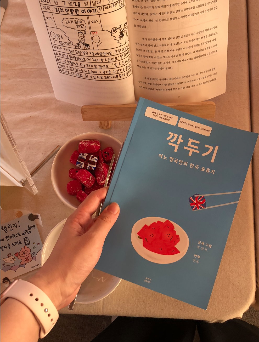 <깍두기> 기획의 8할은 작가 꼬시기였다. 책의 원형이 된 한국어 그림 일기도 나의 강력한 제안으로 연재를 시작했었다. 한국어 연습용으로 혼자 쓴 한국어 일기가 너무 웃겨서 혼자 보기 아까웠기 때문이다. 그게 잘 되기 시작하자 그때부터 이걸 책으로 한 번 내보자고 살살 꼬드겼다. ‘작년에 내가 책 낸 거 보지 않았냐. 꼭 출판사에 투고해서 베스트셀러가 되기 위해 치열하게 경쟁하지 않아도, 그냥 독립 창작자로서 책을 자체적으로 만드는 것도 가능하다. 나한테 원고랑 그림 주면 내가 나머지는 다 알아서 할게.’ 내 책이 아닌 남의 책을 만들면 이전에 비해 부담이 좀 덜 할 거란 생각도 있었다. (이게 얼마나 큰 착각이었는지는 나중에 다루도록 하겠다.)