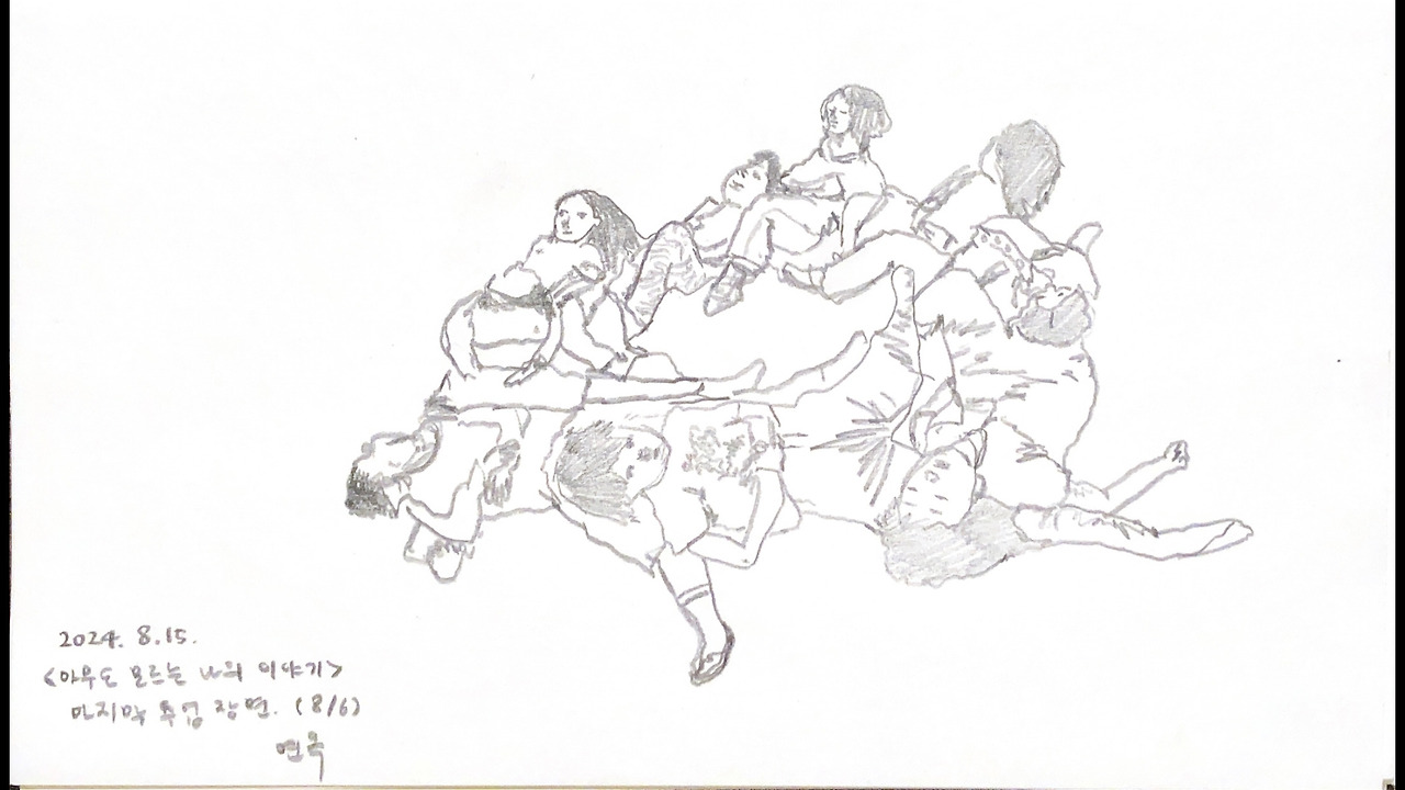 다른 날에는 눈을 감은 채 천천히 걸어다니다가 자연스럽게 스치는 사람과 원하는 만큼, 안전하다고 느껴지는 만큼 몸을 붙이기도 했다. 서로가 인도하는 대로 말없이 따라가고, 어둠과 침묵 속에서 보이지 않는 몸짓으로 무언의 대화를 나누었다.
