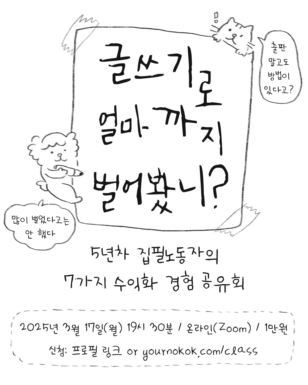 혹은 '전업까지는 바라지도 않아. 부수입을 만들거나, 좀 더 본격적으로 글로 먹고 살 기반을 닦으려면 어떤 걸 시도할 수 있을까?'