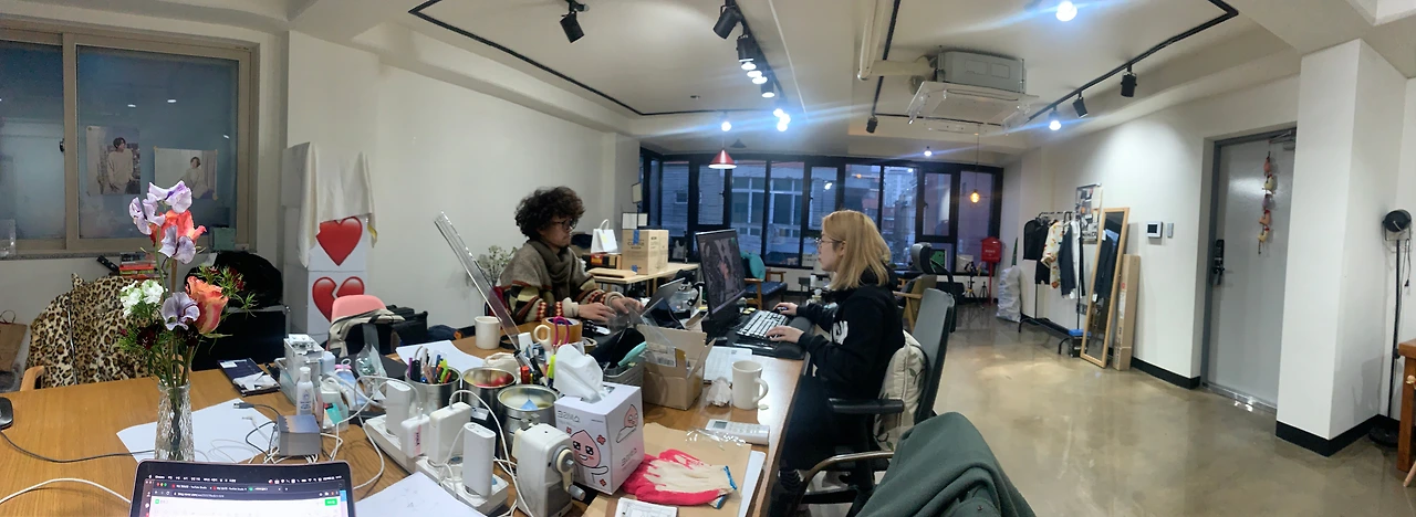 이런 스탭들과 매일 농담과 일을 섞은 대화를 끊임없이 나누고, 그 속에서 만들어지는 기발함에 열광하다 보면 어느샌가 날이 저물고 창밖은 어두워져 있지만, 사무실에는 에너지가 가득 찹니다. 이 에너지를 전기로 바꾸면 태양광 부럽지 않은 전력이 발생할 것만 같습니다.