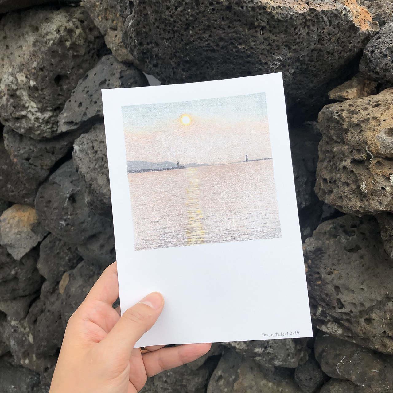 태양은 사실 짜리몽땅한 둥근 몸이 맘에 들지 않는지 작은 섬 앞 바다를 거울삼아 길게 늘어뜨린 자신을 보고 반짝이며 웃었어요