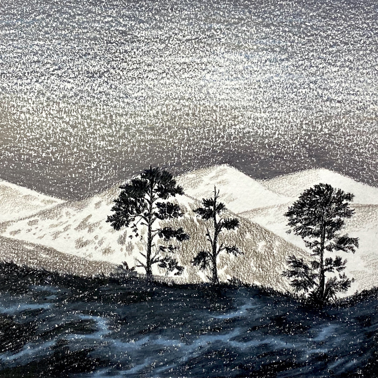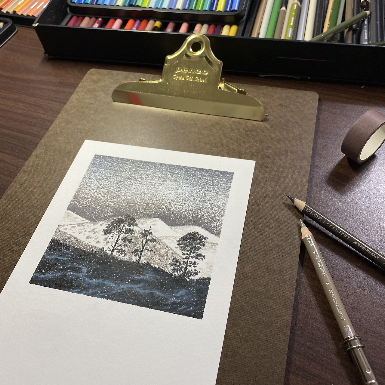 한 손으로 종이를 잡고 한 손으로는 그림을 그리고 한쪽