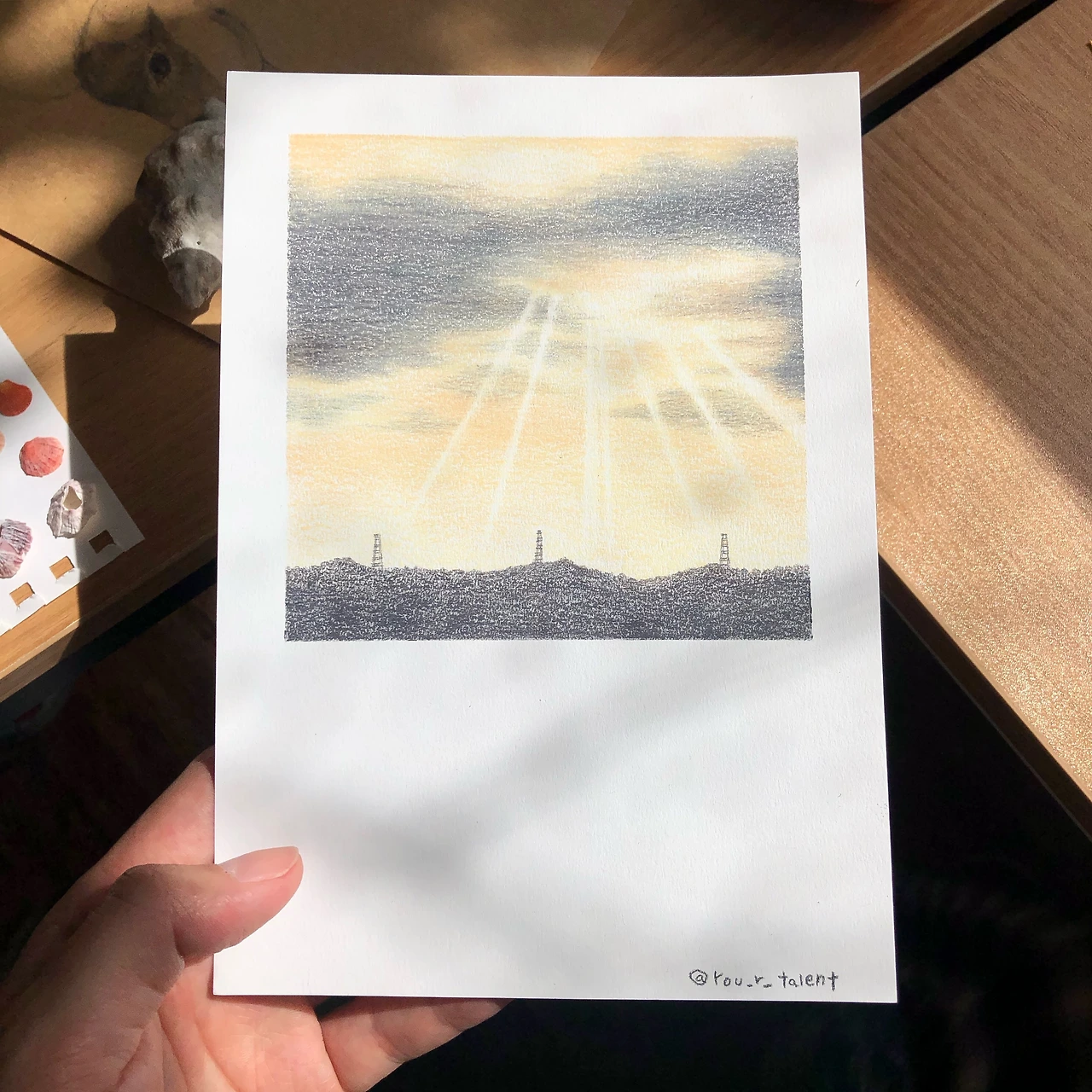 그을려 버린 뒤구름 사이로 새하얀 황금빛 줄기가