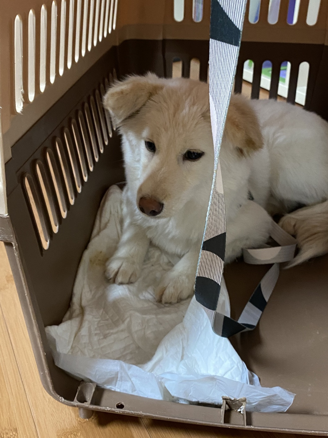 두 번째 "수수"는 4개월 된 아기 강아지였고, 처음엔 구석에 얌전히 앉아만 있더니 점차 개구쟁이가 되어갔어요. 집안의 배변패드며 침대며 다 갉아대고(이가 나느라 간지러워서 그런답니다).. 이 아이는 둘째가 더 많이 정을 주었어요. 역시 미국으로 입양되었습니다. 보통 6킬로 이상 되는 강아지들은 한국에서 선호되지 않아서 미국으로 입양을 많이 보낸다고 하더라고요. 지금 있는 소금이도 7kg에 우리 집에 와서 지금은 거의 8kg에 가까이 몸무게가 나갑니다. 다들 믹스견이고요. 모두 하얀 털의 강아지들이었습니다.