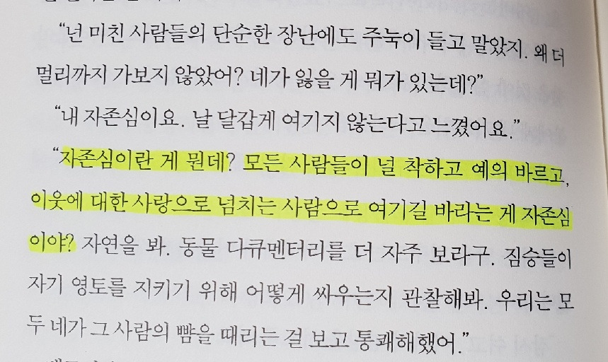 마지막으로 살면서 '타인의 시선'과 '자존심' 때문에 답답함을 느껴본 사람들에게 이 문장을 보여주고 싶다.