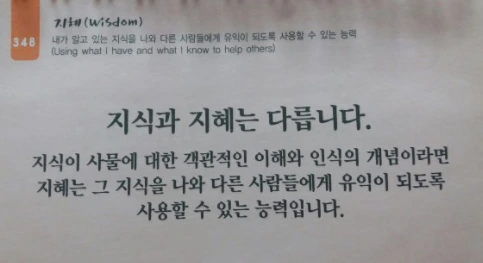 명성이 높거나 학벌이 좋거나 나이가 많다고 해서 그들이 모두 지혜롭다고 볼 수는 없다. 권위 있는 지식인도 해결하지 못하는 문제를 어린아이가 간단히 해결하는 경우도 있다. 이것만 보더라도 인생은 지식보다 지혜가 더 중요하다고 생각한다. 지혜는 여러 방면으로 터득할 수 있다. 지식을 먼저 얻은 후 지혜를 깨닫는 경우도 있고, 반대로 경험을 통해 지혜를 먼저 느끼고 한참 지나서야 그것이 지혜인지 자각하는 경우도 있다.