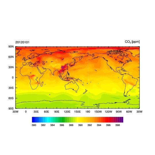 오늘 주제에 맞추어 탄소순환에 대해 말씀드리자면, 이것은(좌측 GIF 이미지) 탄소 순환추적시스템을 통해 365일 동안 전 세계 이산화탄소 농도의 변화를 보여주는 것입니다. 보통 우리가 탄소흡수원이라고 하면 아열대 숲과 같이 광합성이 활발하게 이루어지는 지역을 생각합니다. 하지만 높은 강수량에 따라 그 나무 아래에서는 잎이 썩으면서 이산화탄소를 발생시키기 마련입니다. 이러한 아열대 지역은 탄소를 흡수하기보단 흡수와 발생이 동시에 이루어지면서 상쇄가 되는 지역입니다. 오히려 북반구의 아한대 지역이 탄소흡수원이라 볼 수 있습니다.