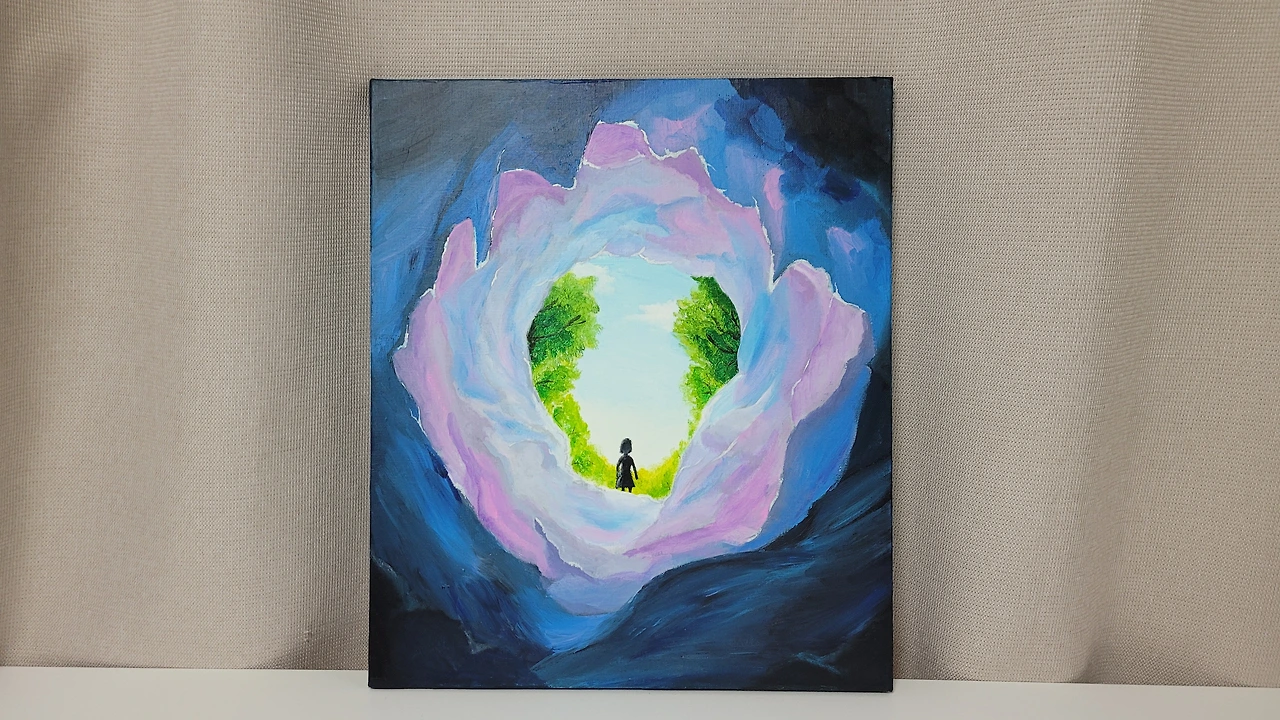 TMI 프로젝트를 통해 유스보이스와 처음 만났다. 지원서부터 자신에 대한 질문을 받았고, TMI 활동을 통해 그 질문의 답을 찾았다. 그 과정 속에서 자신을 긍정적으로 바라보게 됐고, 내가 생각하는 나는 어떤 모습인지 깊게 고민했다. 무언가를 하기 전에 포기하는 자신을 보았고, 나다움이란 건 내 안에 이미 존재하고 있고, 아직 발견하지 못한 부분을 찾는 과정이 중요하다는 걸 알았다. 이 발견을 <여정>이라는 작품으로 표현했다. 기존에 자신이 포기했던 '캔버스 그림'을 통해 표현했다. 주인공이 자신의 내면으로 들어가 잃어버린 기억과 감정을 찾고, 그 과정에서 나를 바라보고 이해하고, 받아들이는 경험을 표현한 작품이다. TMI 프로젝트를 통해 자신을 발견하는 과정을 경험한 백채윤 티머에게 그 깊은 이야기를 들어본다.