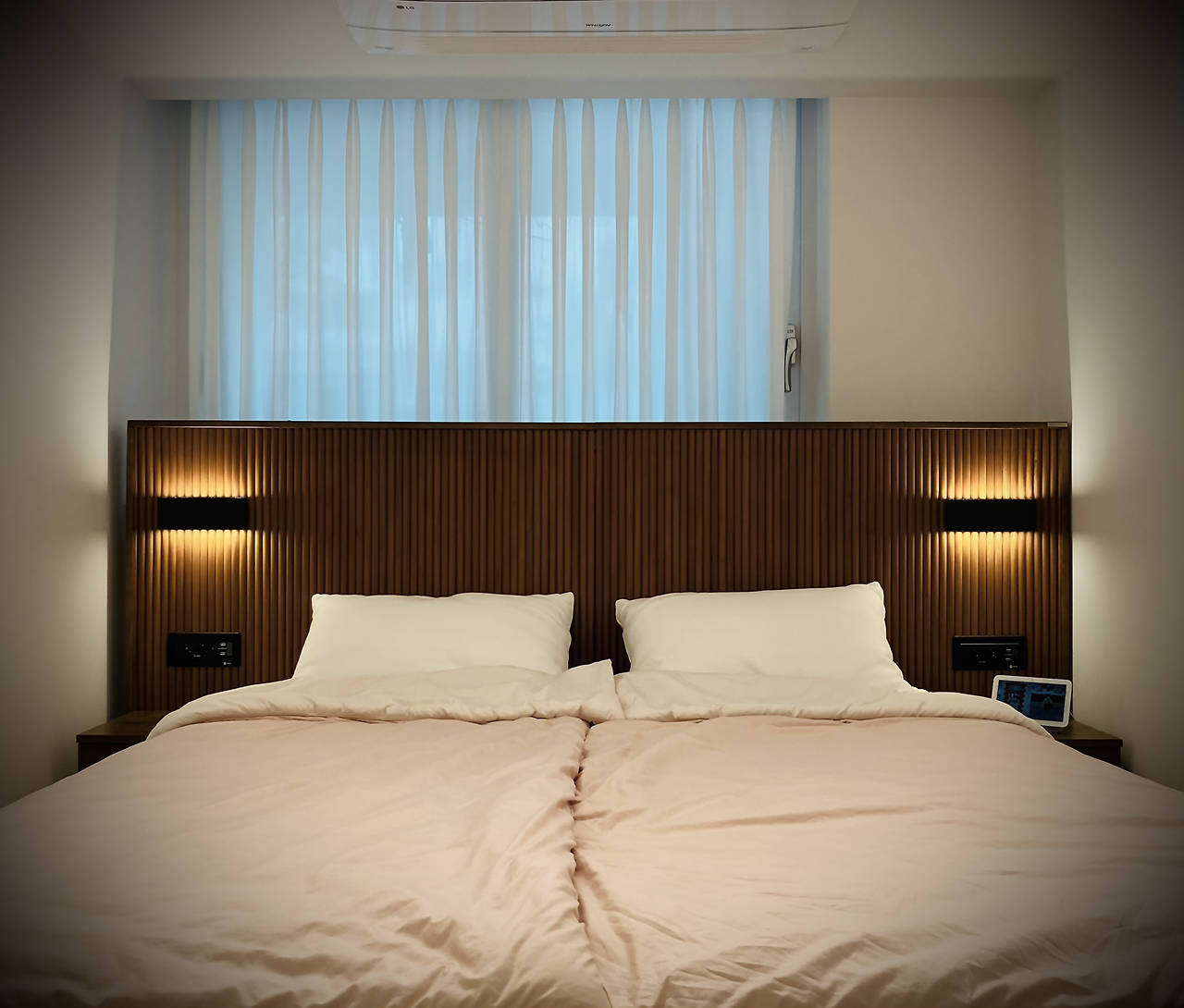 하지만 고생한 만큼 만족스럽게 잘 활용하고 있다. 양쪽의 작은 협탁과 간단한 조명은 각자 침대에서 책을 읽거나 핸드폰을 하기에 적절했고 침대 아래의 서랍은 베개나 이불 커버를 넣어두기에 안성맞춤이다.