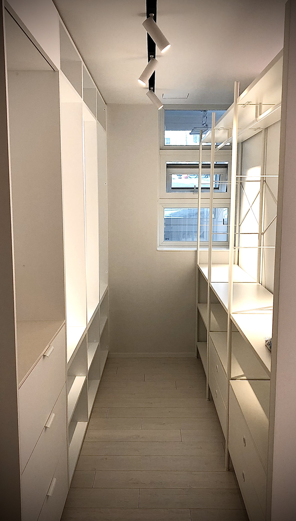남편은 나보다 더했다. 원래 크게 관심이 없을뿐더러 좋아하는 몇 벌의 옷으로 회사-집-여가활동 모두 해결해버리니... 우리는 드레스룸이 따로 없어도 괜찮을 것 같았다.
