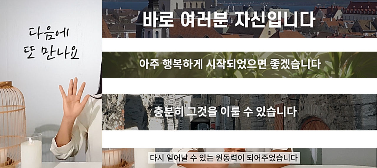 그렇기 때문에 영상 속 텍스트를 읽기 위해서는 짧은 시간에 대단한 집중력이 필요하다. 더군다나 영상에는 텍스트보다 훨씬 자극적이고 재미있는 요소들이 많다. 그러니 텍스트로 무언가를 전달하고자 한다면, 핵심만 남기고 나머지는 모두 지워야 한다.