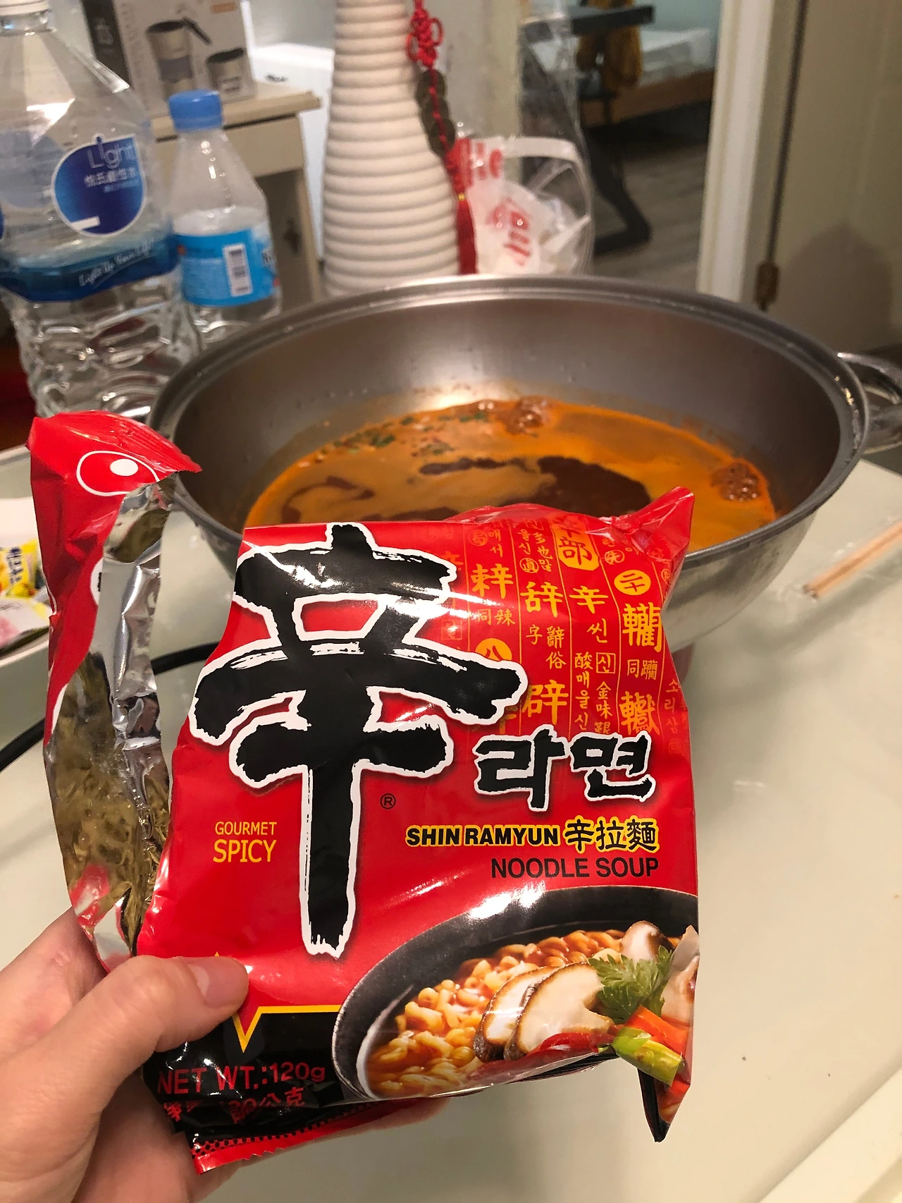 카페에서 나온 뒤 들린 편의점에서 신라면 두 개를 사와 끓여먹었다.