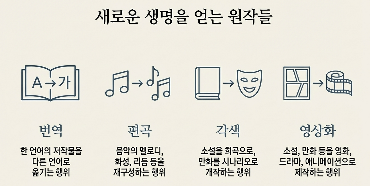 번역, 편곡, 각색, 영상화. 이 모든 것이 2차적저작물을 만드는 행위다.
