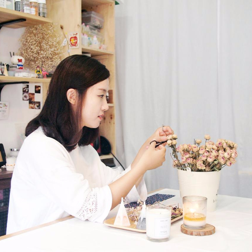 간판도 없어 주의를 기울이지 않으면 발견하기도 어려운 작은 공방에서 나는 향이 나는 초를 만들고 꽃도 말리고 글씨도 쓰고 뜨개질도 한다. 손으로 끊임없이 무언가를 만들며 공간을 지키는 것이 내 일이다. 때로는 사람들을 만나기도 하지만 때로는 입도 한 번 열지 않고 작업만 하는 시간을 보내기도 한다. 흘러가는 대로 시간을 두고 틈틈이 작업을 한다고 표현하는 것이 더 나을지도 모르겠다. 너무 흐르는 대로 몸을 맡기는지 때때로 공방이 닫혀있기도 해서 연락 없이 찾아온 사람들을 퇴짜 놓기도 한다. 대책 없는 공방이다.