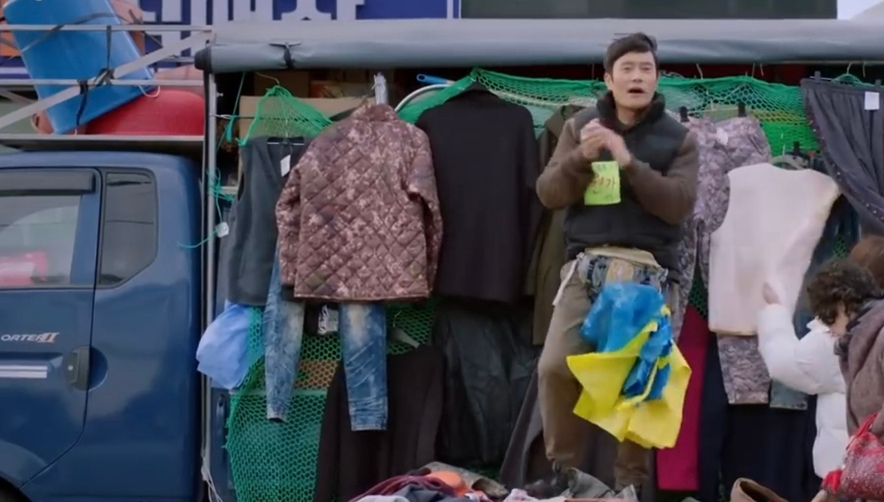 짐칸도 모잘라 운전석 뒤에도 한가득인 짐을 이고 지며 이리저리 방황하는 동석의 트럭은 언제나 힘겹고 위태롭다. 동석은 하필 집도 언덕위에 있어 트럭을 주차하면 쓰러질 것만 같이 기울어있다. 안정되어 보일 때는 그나마 평상 위에 트럭에 가득이던 짐을 좀 내어놓고 발로 탬버린 구르며 “골라 골라 파격쎄일”을 핏대 세워가며 외칠 때다. 사연이 구구절절한 자신의 과거를 소화 못 하고 있는 동석의 내면이 그대로 보인다. 동석의 트럭은 곧 동석이다.