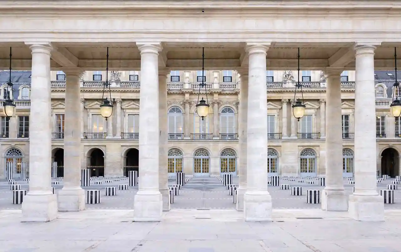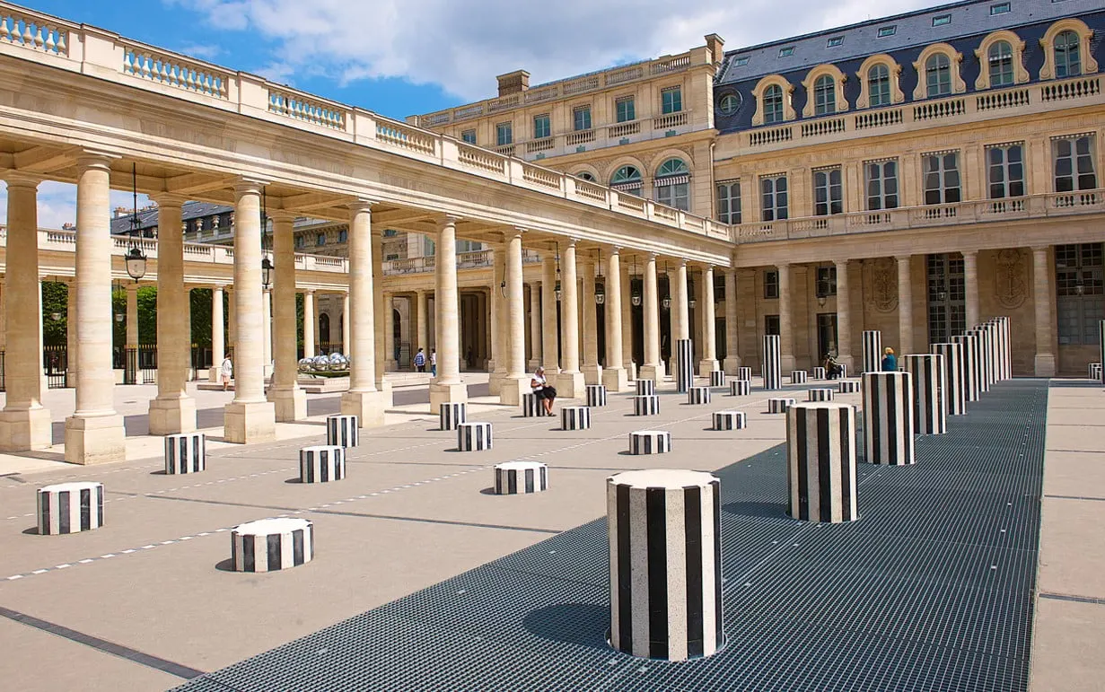 설치미술가 다니엘 뷔랑의 작품인 260개의 높낮이가 다른 원기둥을 볼 수 있다.