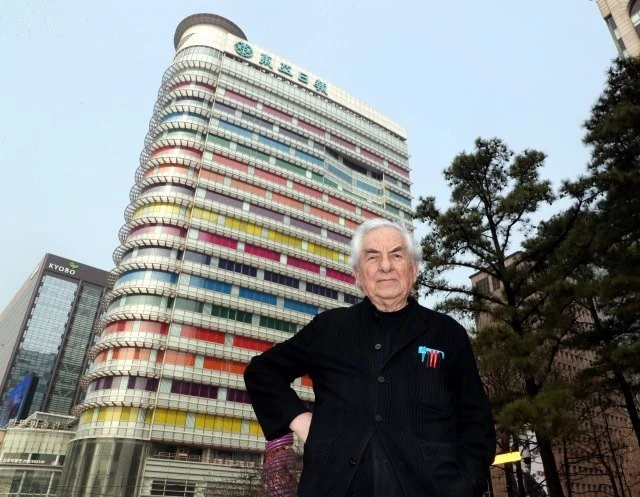 다니엘 뷔랑은 서울에서 동아일보 건물과도 콜라보작업을 한 이력이 있는 예술가이다.