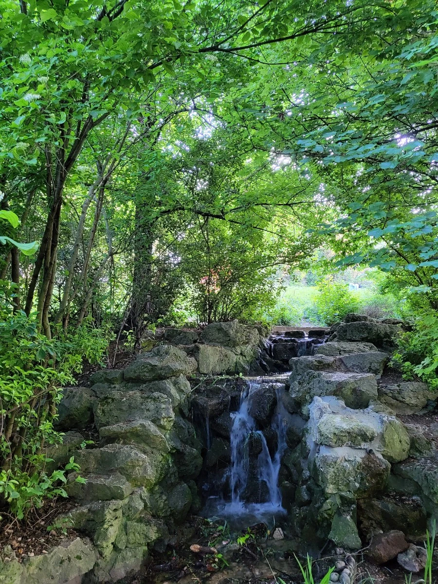 작은 폭포를 볼 수 있고, 벤치도 놓여있어