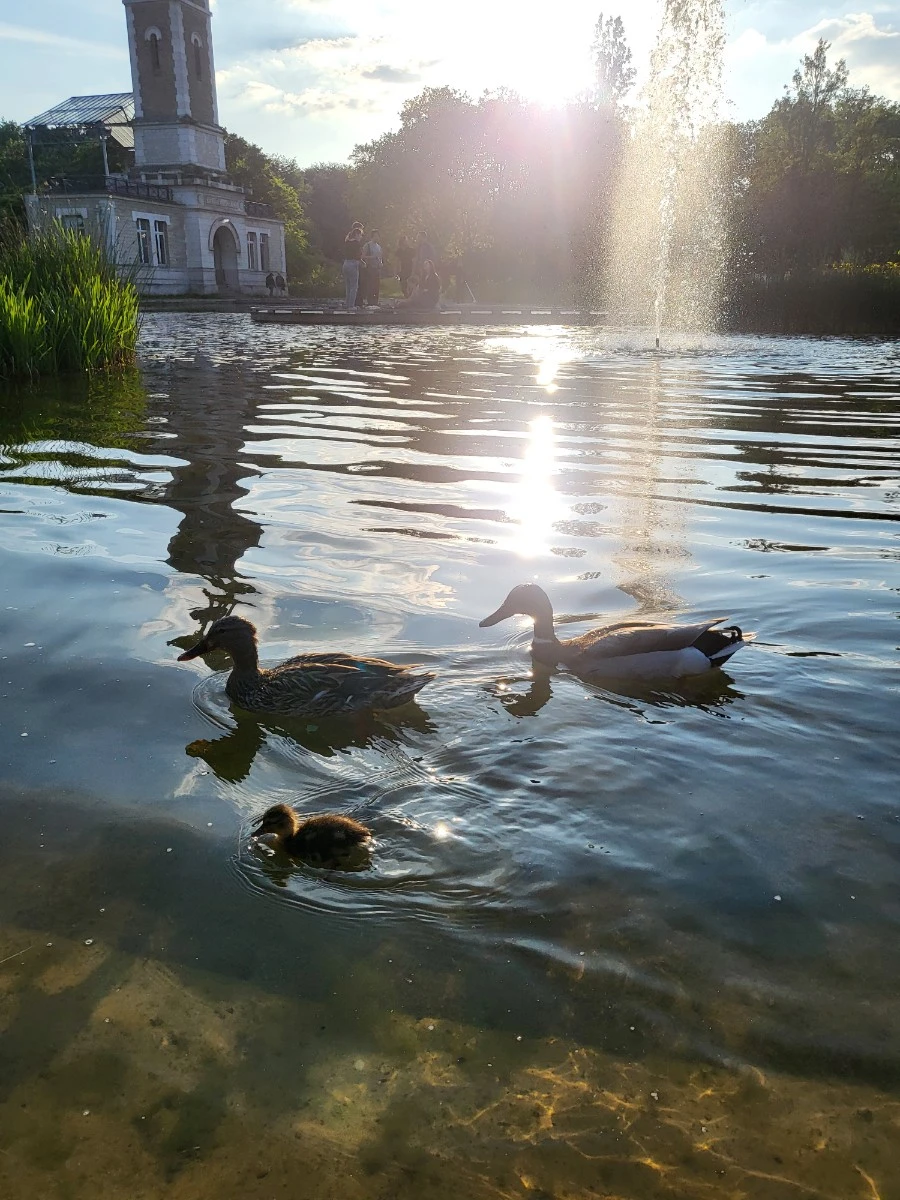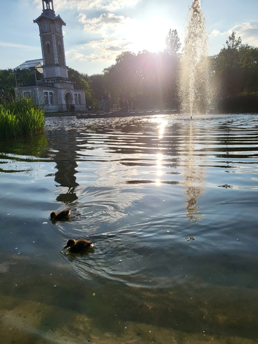 우연히 만난 아기 오리를 보느라 정신이 팔려