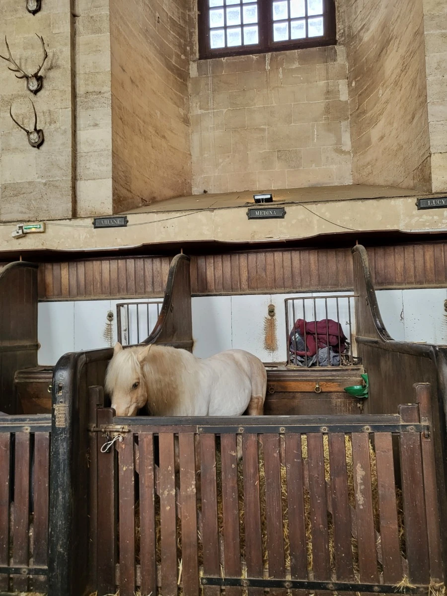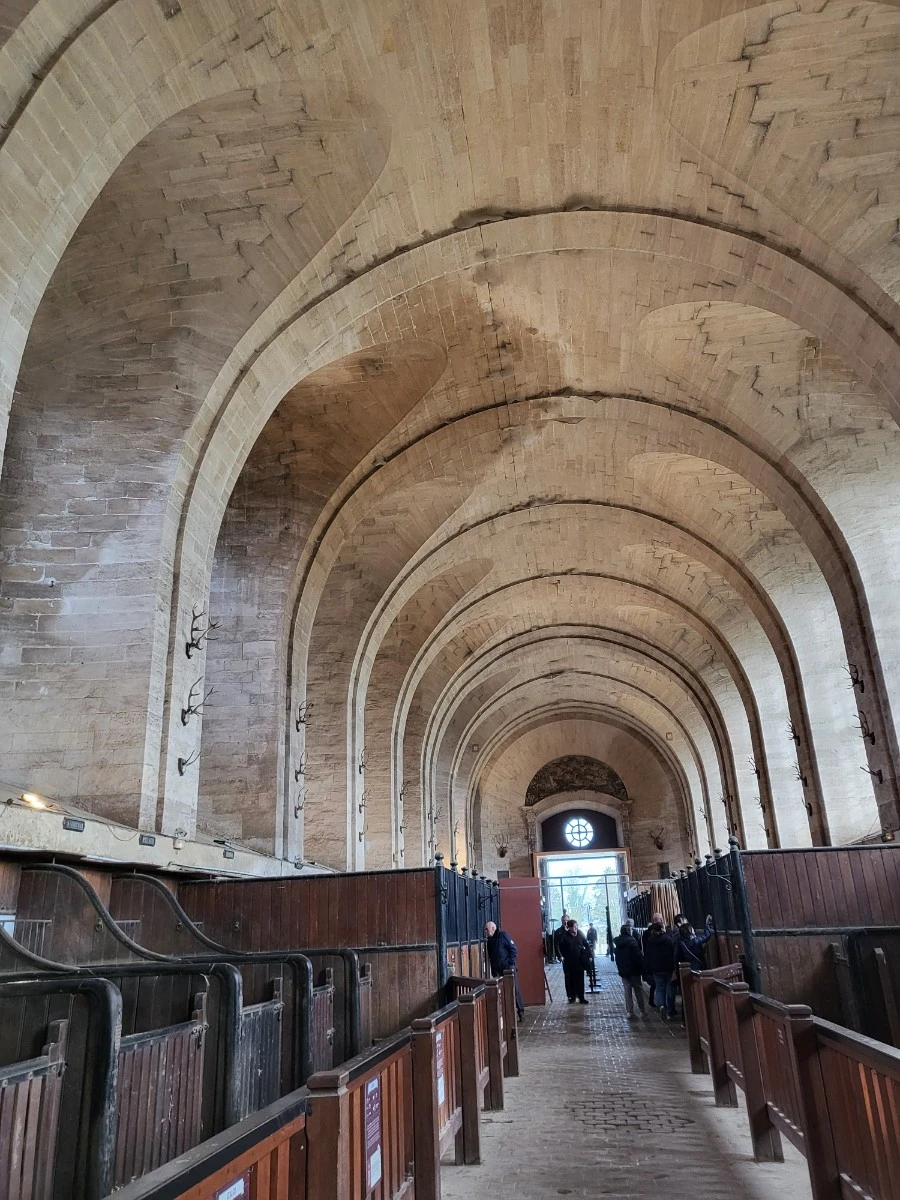 18세기 건축가 장 오베르(Jean Aubert)가 설계한 이 대형마구간은 자신이 말로 환생할 것이라 믿었던, 콩데(Condé)의 7대 왕자 루이 앙리 드 부르봉(Louis-Henri de Bourbon)을 위해 건축되었다.