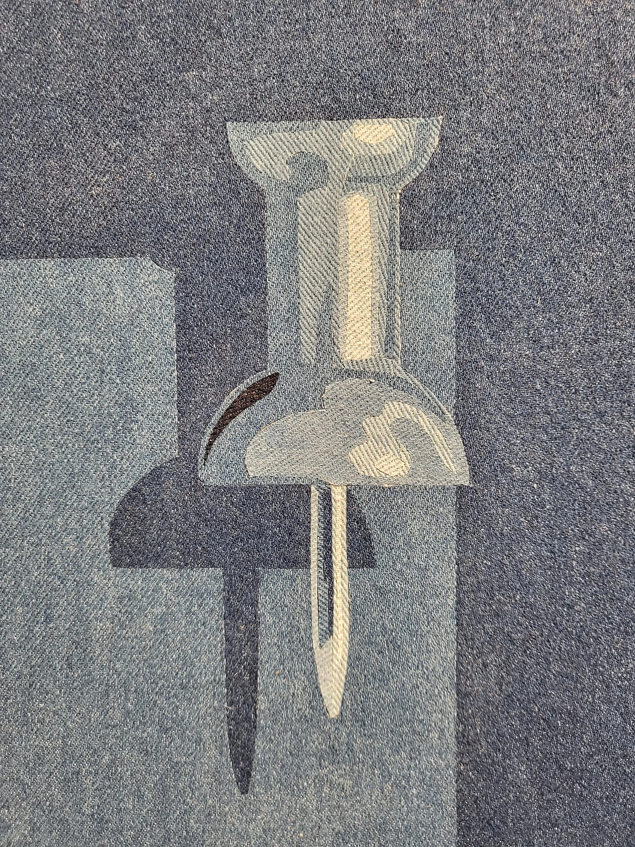 모든 작품을 청바지 조각을 잘라서 만들어 낸 것이었다.