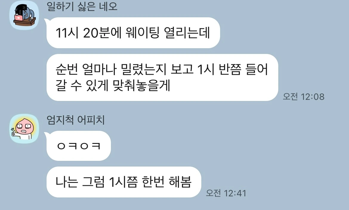 아니, 다들 뭐 먹이를 찾아 헤매는 물고기들처럼 떼로 이동하는 건가? 순식간에 증식한 사람 수에 놀라 급하게 대기 등록을 일단 때렸습니다. 이번만은 도착과 동시에 들어가는 산뜻한 입장을 바랐는데…